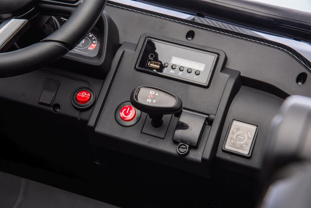 Ten pojazd to małe studio muzyczne na kółkach. Wbudowany panel audio obsługuje USB, MP3, AUX, radio FM, a nawet ma wgrane melodyjki. Dzięki przyciskom dźwięków i klaksonu w kierownicy, dzieci mogą udawać prawdziwe manewry drogowe, dodając realizmu każdej przejażdżce.