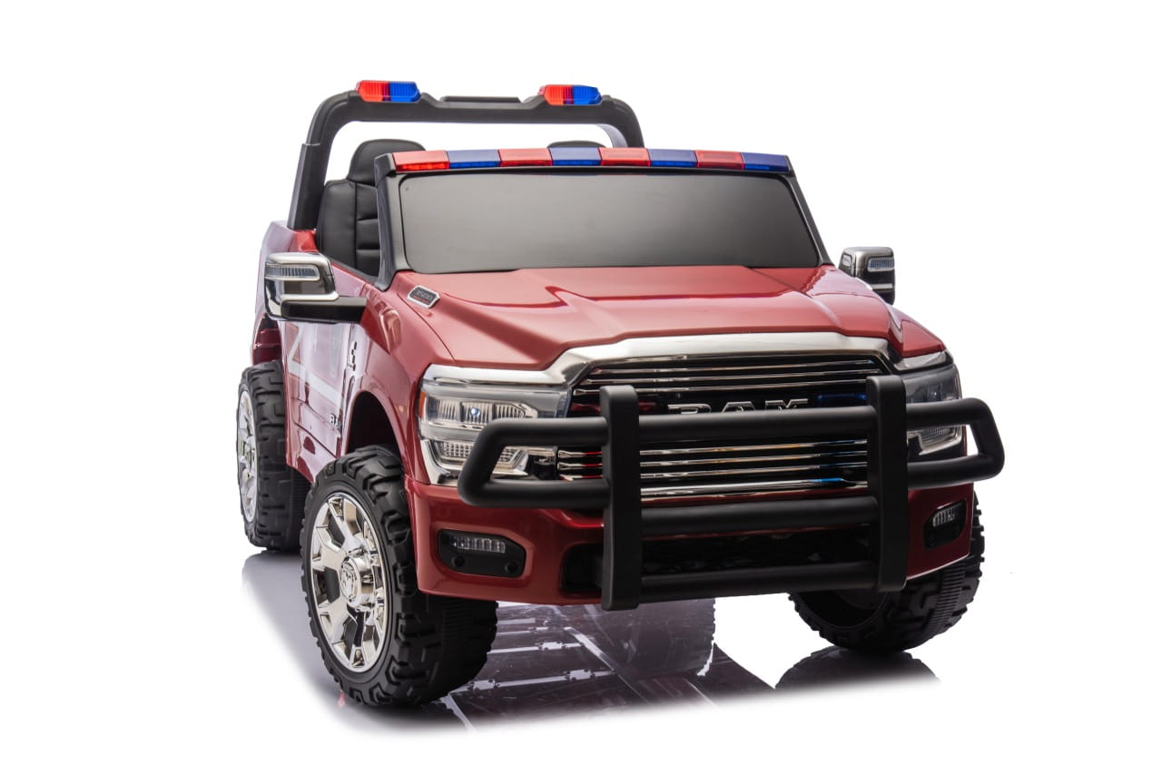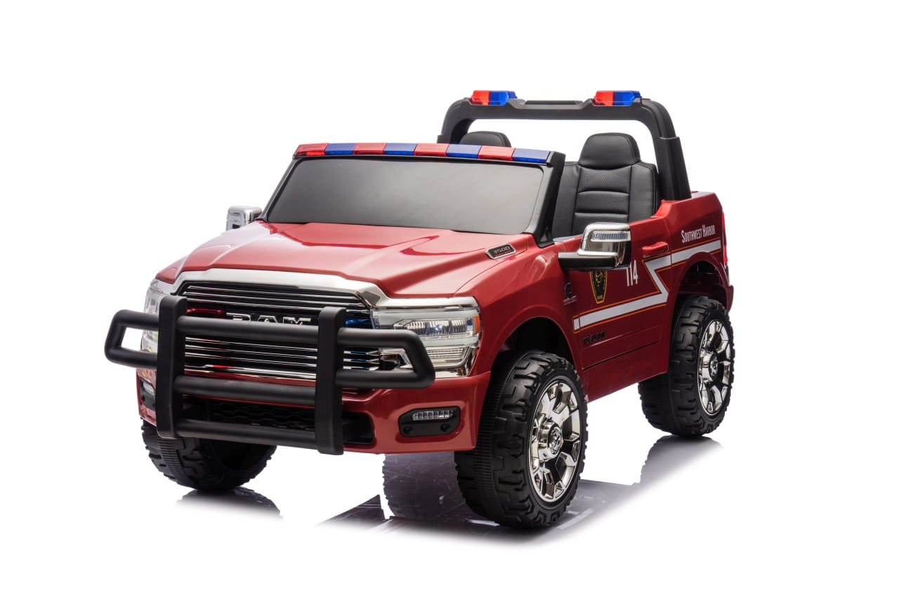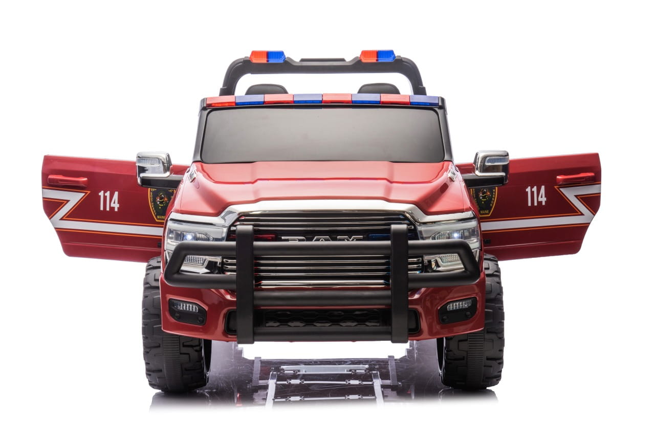 Gotowi do akcji! Strażacki RAM 3500- autko na akumulator w kolorze czerwonym