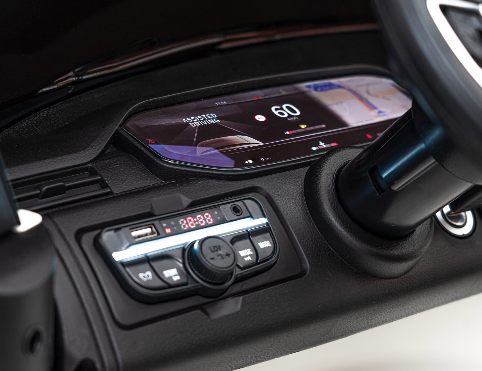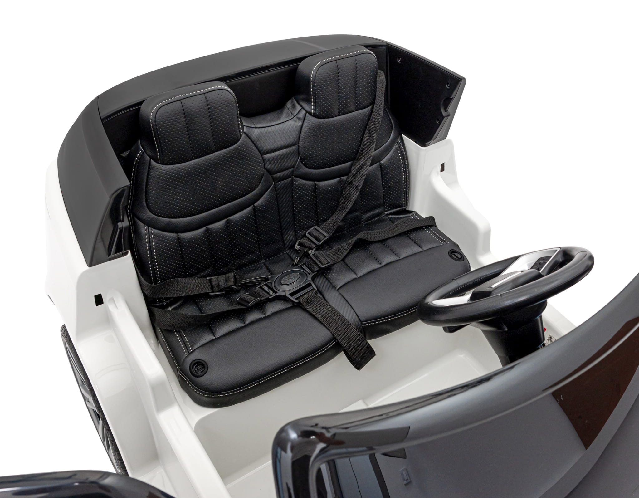 Samochód został zaprojektowany z dbałością o każdy detal, co widać zarówno w wyglądzie, jak i w funkcjonalności. Pojedyncze siedzenie z czarnej ekoskóry z pasami bezpieczeństwa zapewnia wygodę i ochronę. Dołączony pilot zdalnego sterowania 2.4G z przyciskiem STOP pozwala rodzicom na pełną kontrolę nad pojazdem, co jest nieocenione podczas pierwszych przejażdżek.