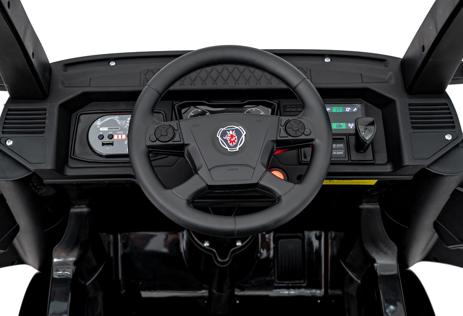 Wiemy, że dla rodziców najważniejszy jest spokój ducha. Pojazd Scania R-SERIE Czarny wyposażony jest w funkcję Wolnego Startu, co oznacza, że auto nie szarpie przy ruszaniu, chroniąc kręgosłup i zapobiegając wystraszeniu się dziecka. Dodatkowo pasy bezpieczeństwa oraz otwierane drzwi z blokadą sprawiają, że zabawa jest w pełni kontrolowana.