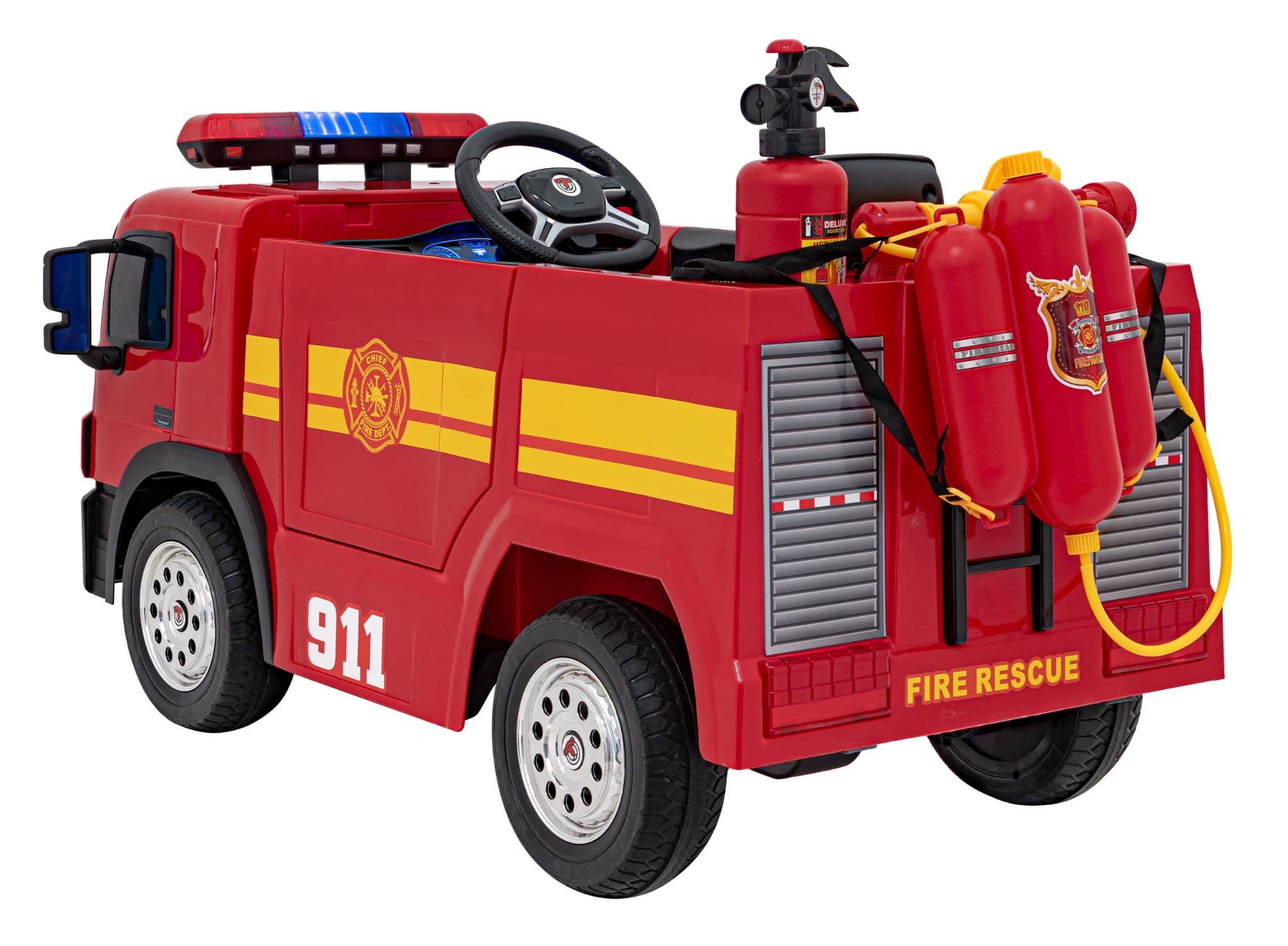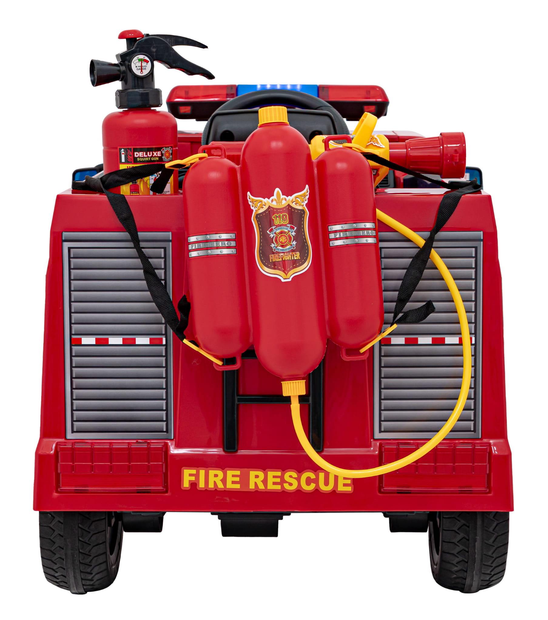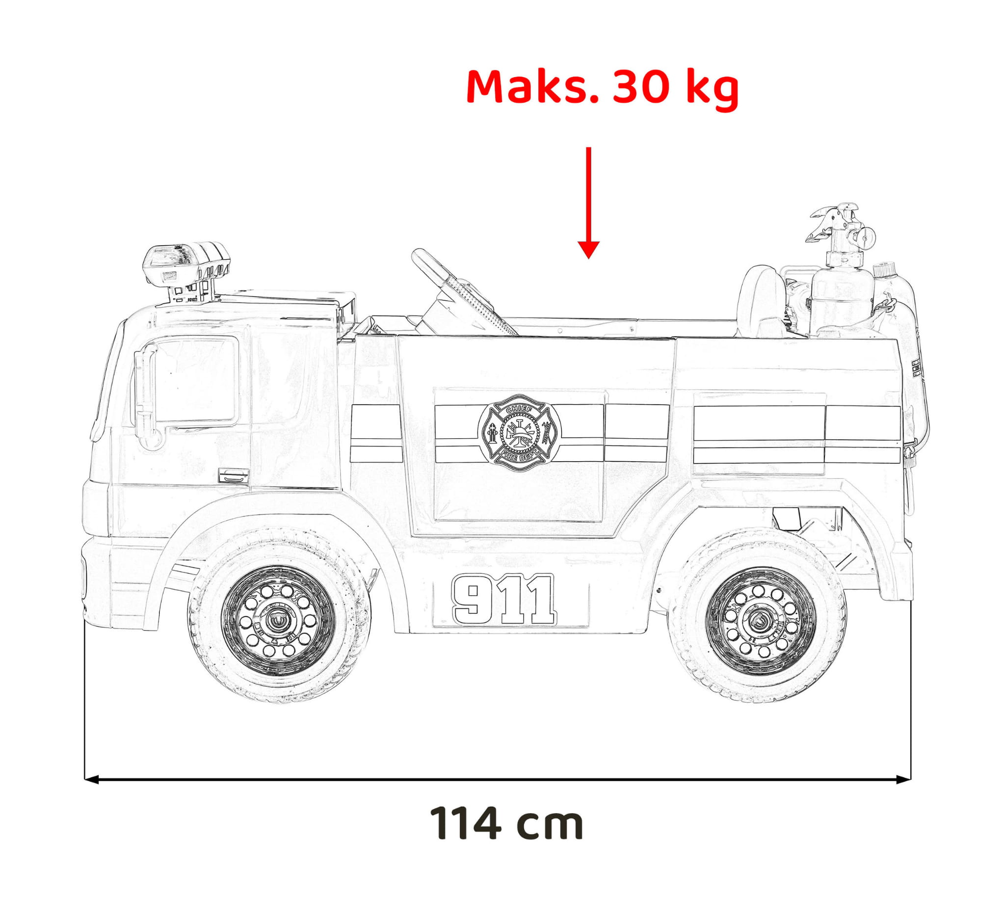 Komfort jazdy i dodatkowe funkcje dzięki którym dziecko wcieli się w rolę prawdziwego strażaka.