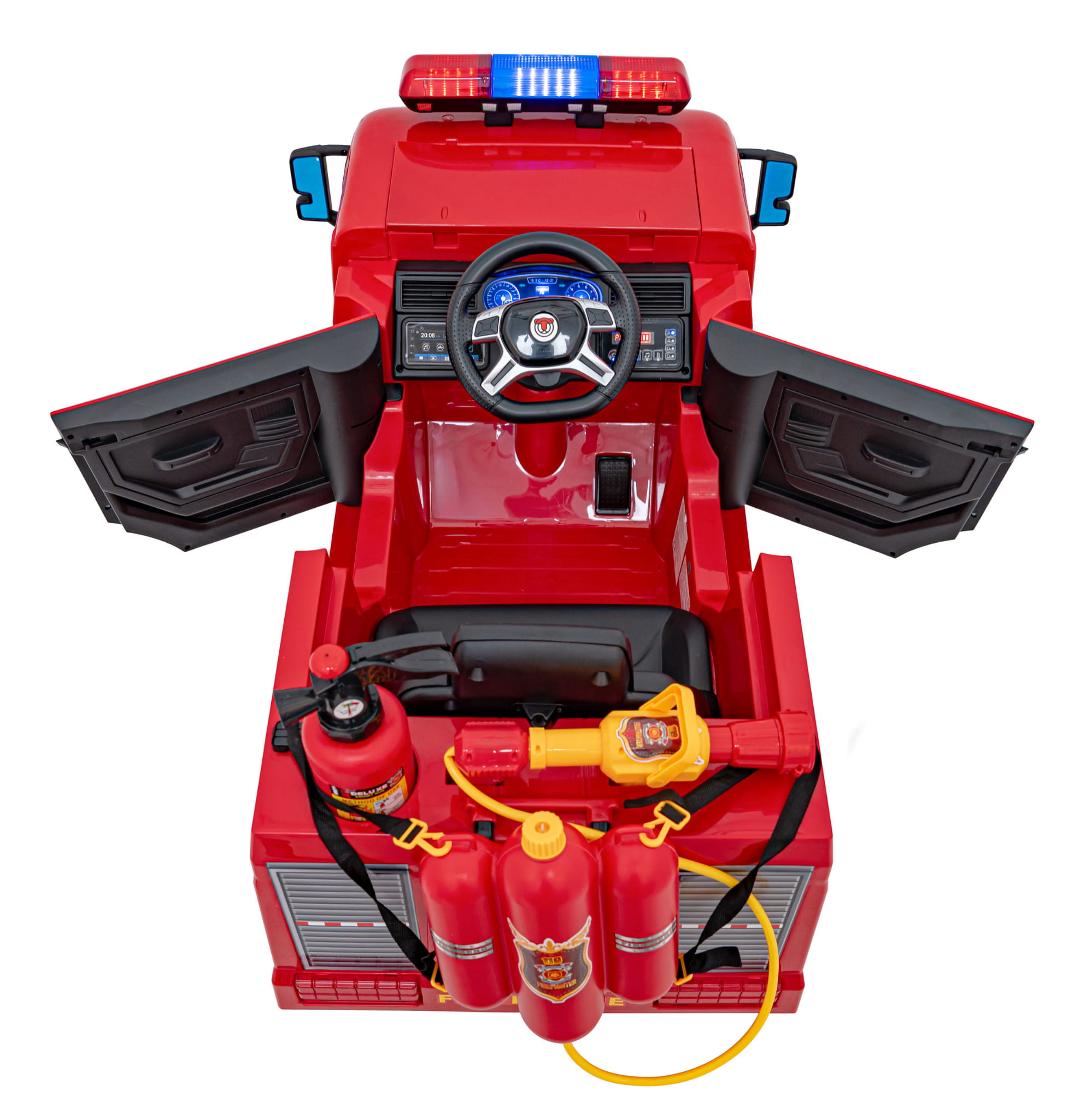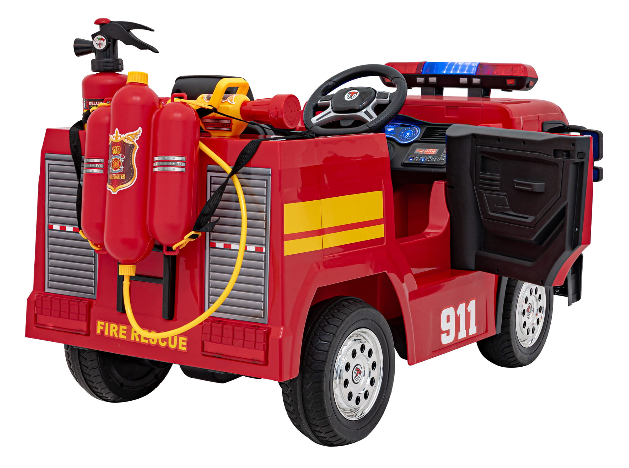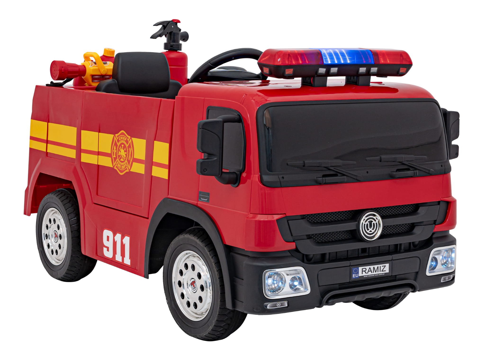 Komfort jazdy i dodatkowe funkcje dzięki którym dziecko wcieli się w rolę prawdziwego strażaka.