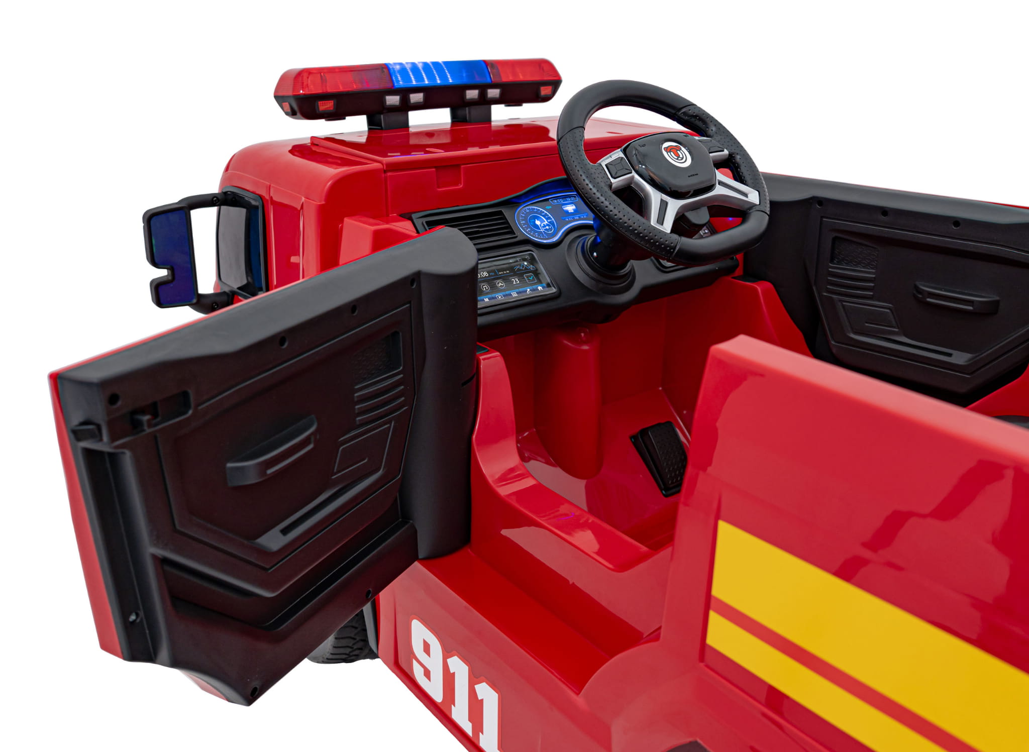 Wentylowane siedzenie, otwierane drzwi, panel audio z wejściem USB/MP3, a nawet wbudowane radio i syreny sprawiają, że każda przejażdżka to prawdziwa przygoda!