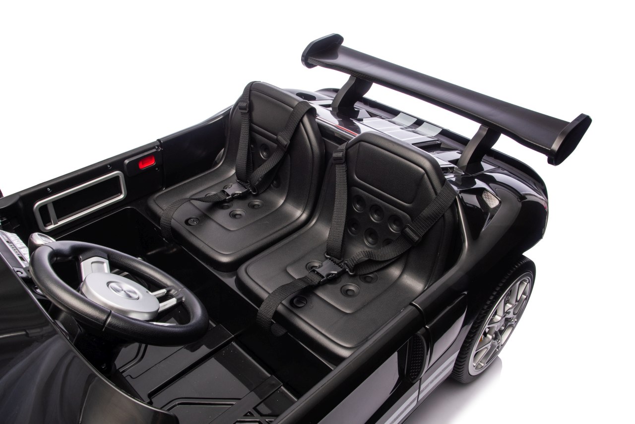 Komfort ma kluczowe znaczenie. Ten model wyposażono w podwójne siedzenie z ekoskóry o wymiarach 26 x 19 x 19 cm idealne dla rodzeństwa lub małego pasażera. O bezpieczeństwo dbają regulowane pasy bezpieczeństwa oraz amortyzatory na tylnej osi.