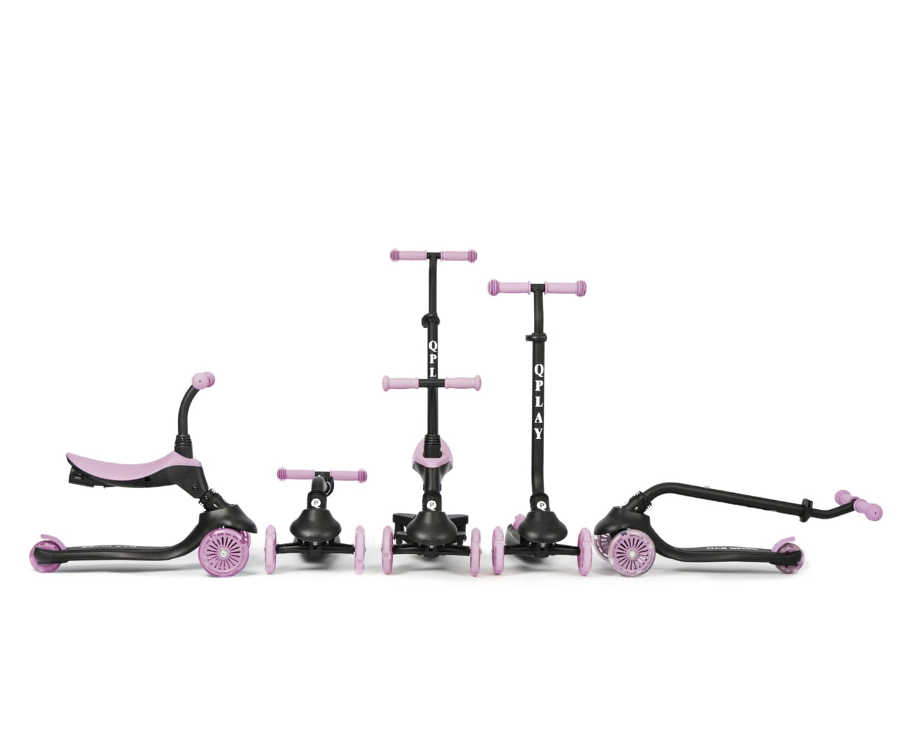 Trzy funkcje: jeździk, hulajnoga z siedziskiem i klasyczna hulajnoga