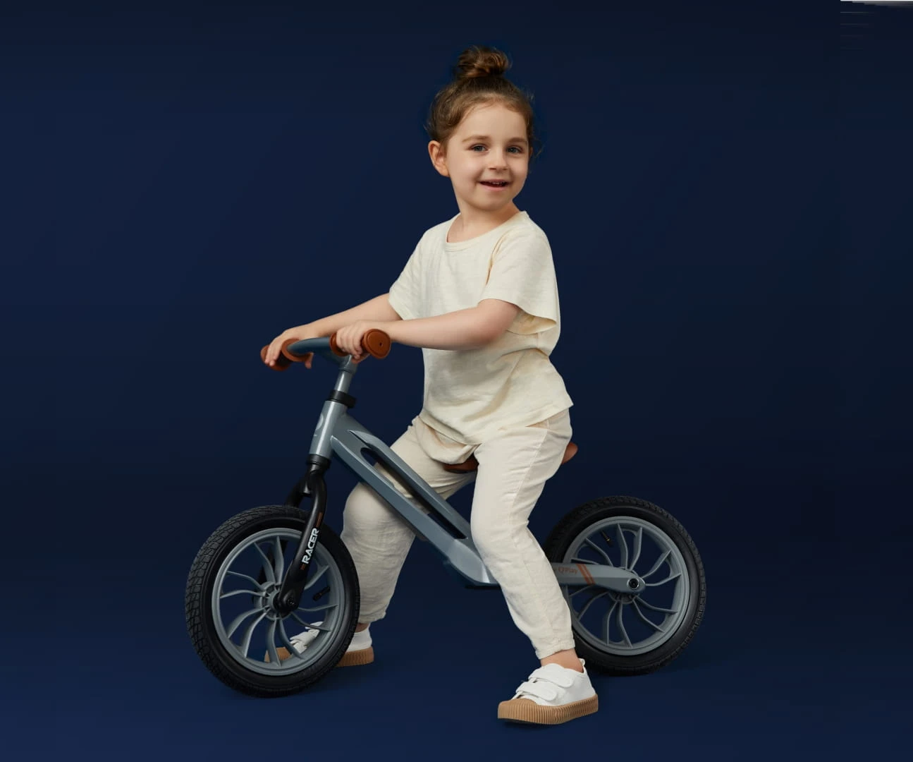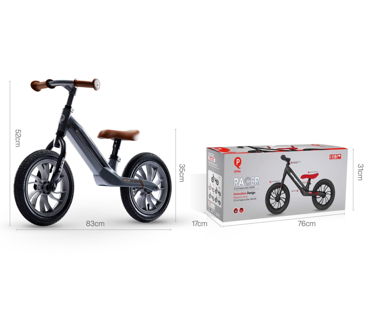 Rowerek biegowy RACER to designerski i solidny produkt, zaprojektowany i wykonany w najnowszej technologii. Stop magnezu wykorzystany w ramie powoduje, że jest ona lekka, ma wysoką wytrzymałość i duży moduł sprężystości. Użyte w rowerku 12” pompowane opony z bieżnikowaniem zapewnią stabilność i bezpieczeństwo na wszystkich nawierzchniach drogowych.