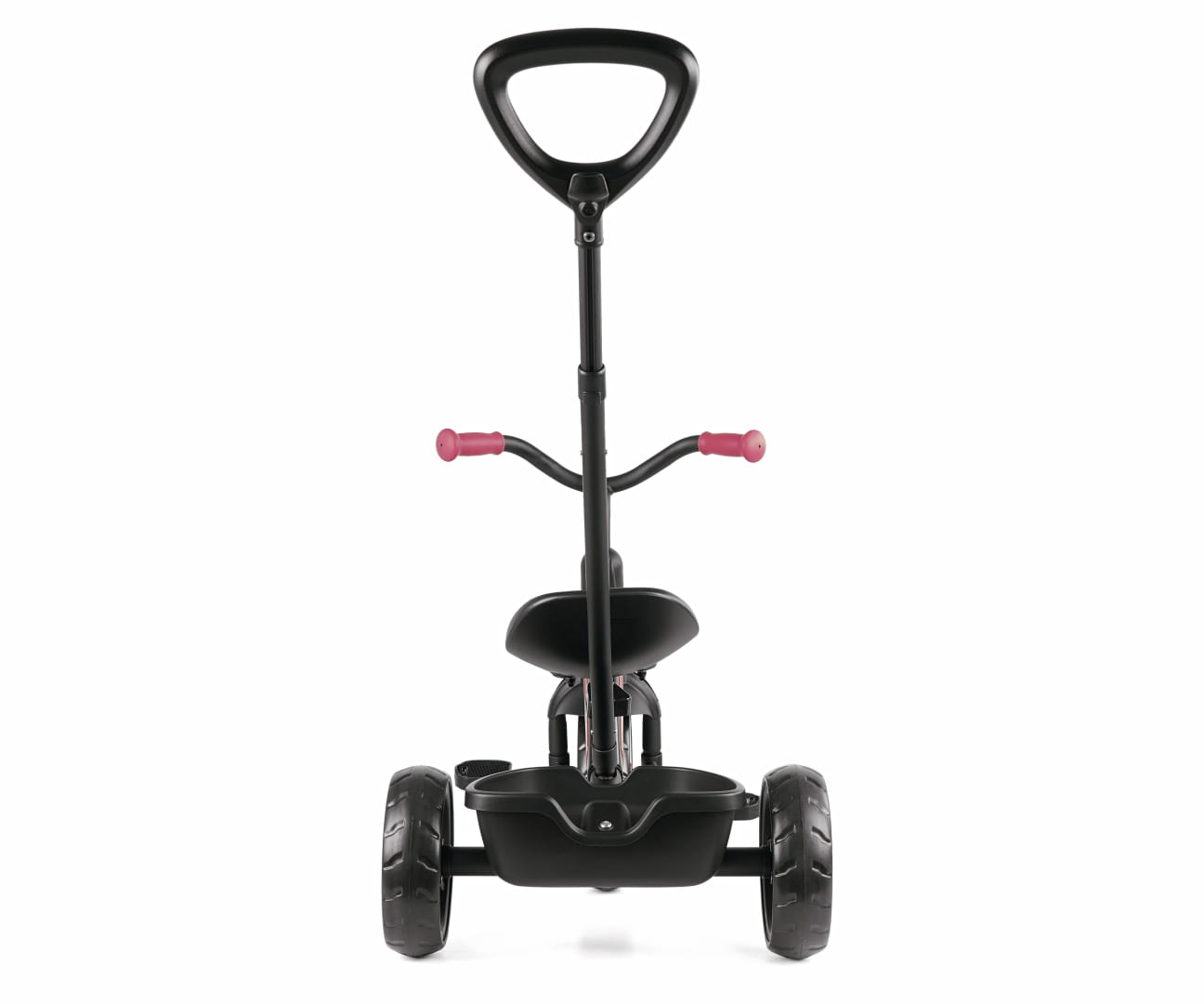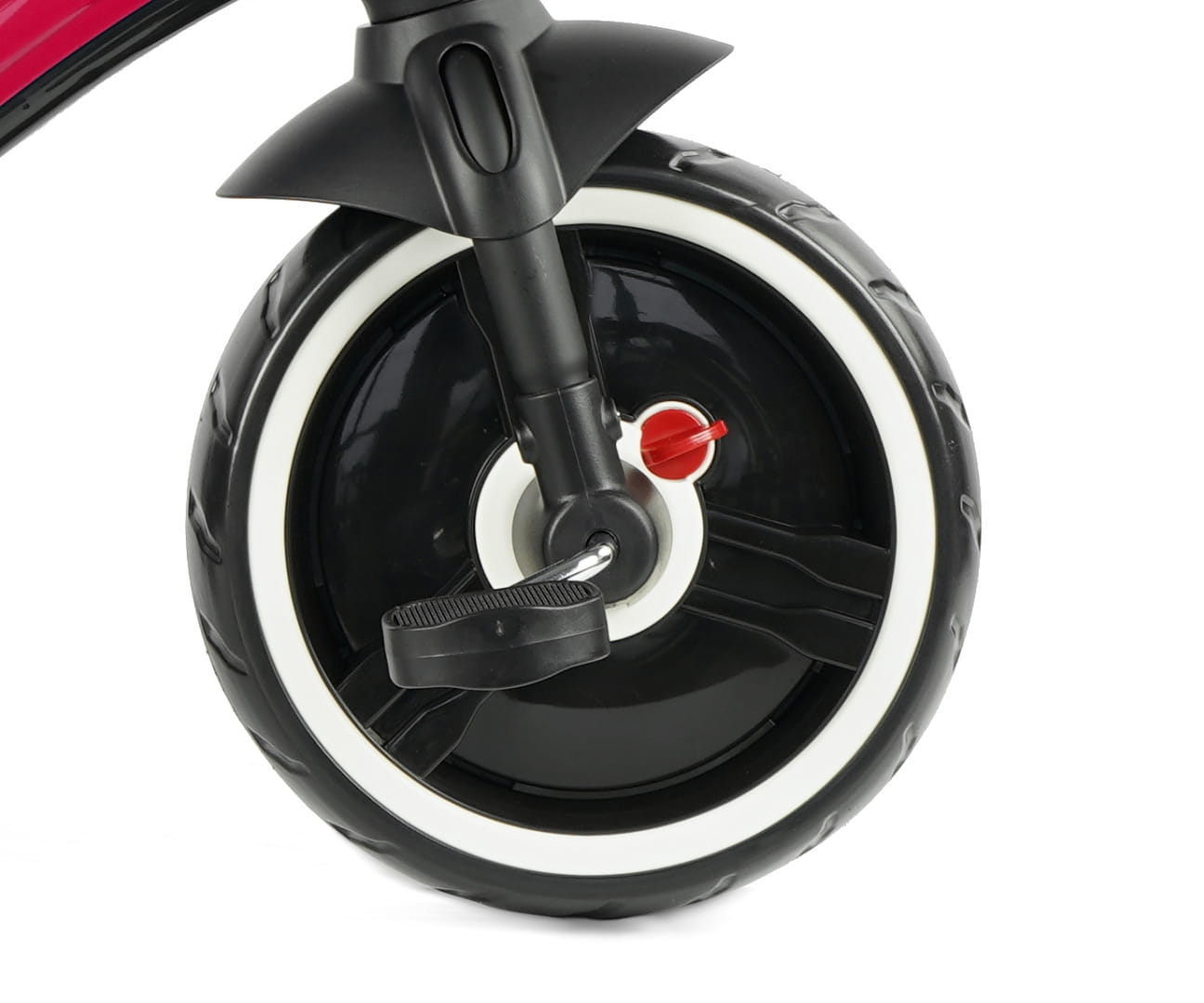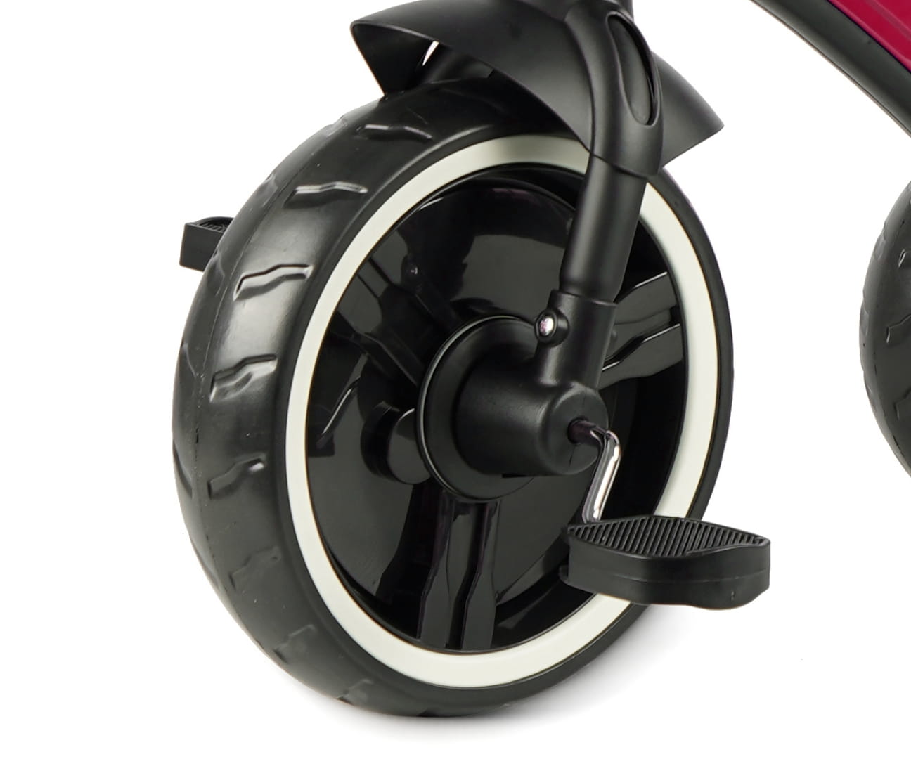 Pedały umieszczone w przednim kole – napędowym posiadają antypoślizgową strukturę która zapobiega ześlizgiwaniu się bucików z pedałów. Funkcja wolnego koła pozwala odpocząć dziecku podczas gdy rodzic prowadzi pojazd.