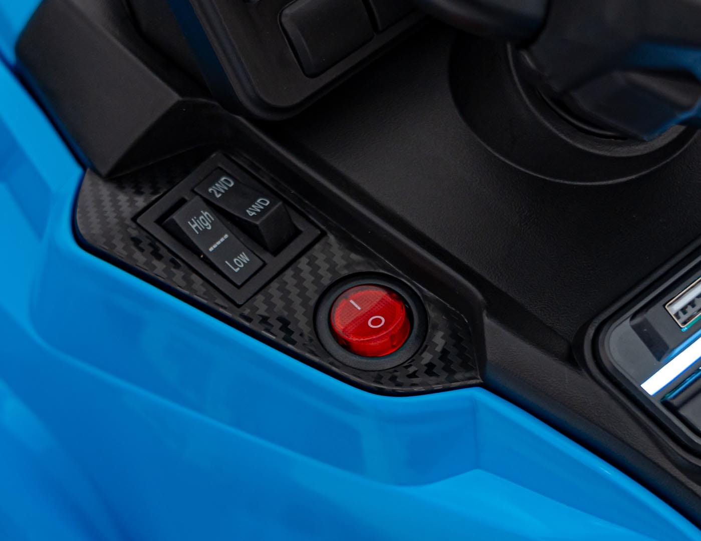 Bo nie samą jazdą żyje człowiek – nawet ten mały. Dlatego quad elektryczny Can-Am ma pełny panel multimedialny z Bluetooth, MP3, radiem FM, AUX i USB. Można puścić ulubioną playlistę z bajek albo disco z telefonu – jak kto woli. Do tego światła LED z przodu i z tyłu, które nie tylko wyglądają efektownie, ale poprawiają widoczność podczas wieczornych przygód.