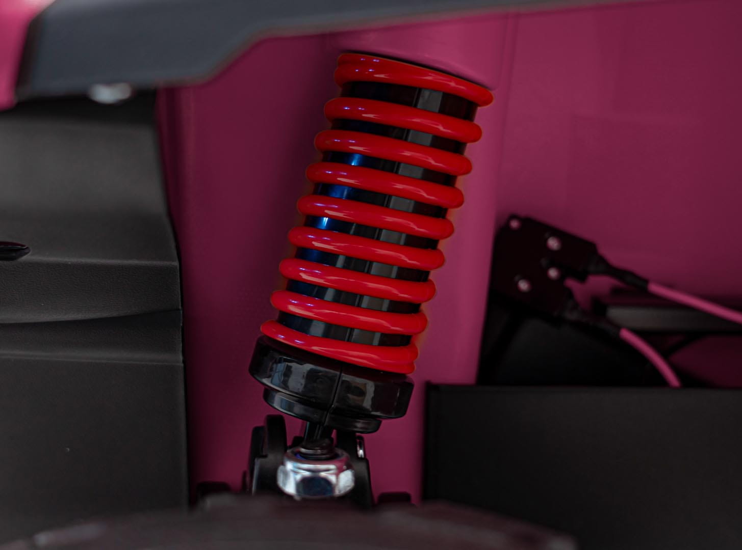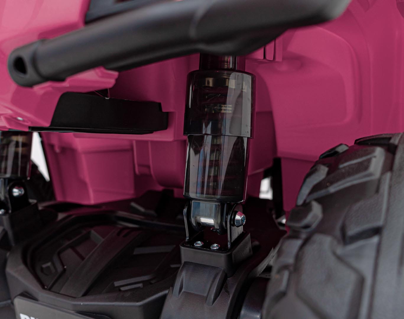 Quad elektryczny dla dzieci wygląda jak terenowy potwór, a jeździ jak marzenie. Duże piankowe koła EVA (32x13 cm) nie tylko świetnie wyglądają, ale też świetnie tłumią nierówności, nie hałasują i są odporne na przebicia. Do tego dochodzą dwa tylne amortyzatory, które zwiększają komfort jazdy – nawet na nierównym podłożu.