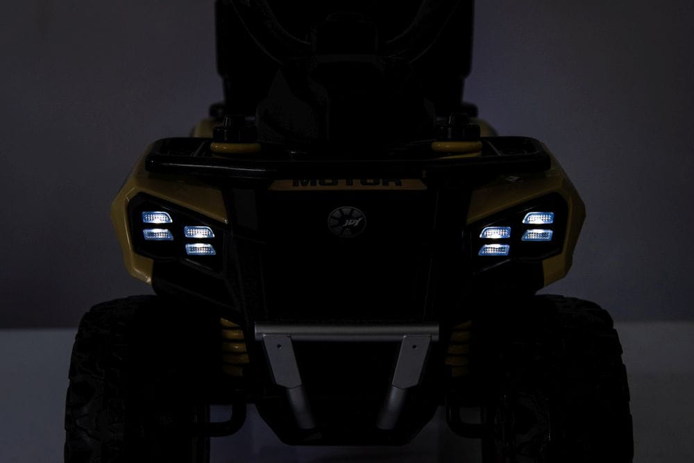 Wieczorne przejażdżki to czysta magia dzięki przednim światłom LED. Dodatkowo quad na akumulator GTS1155 posiada wbudowany panel muzyczny, który pozwala dziecku cieszyć się ulubionymi melodiami podczas jazdy, co jeszcze bardziej angażuje zmysły i uatrakcyjnia każdą wyprawę.