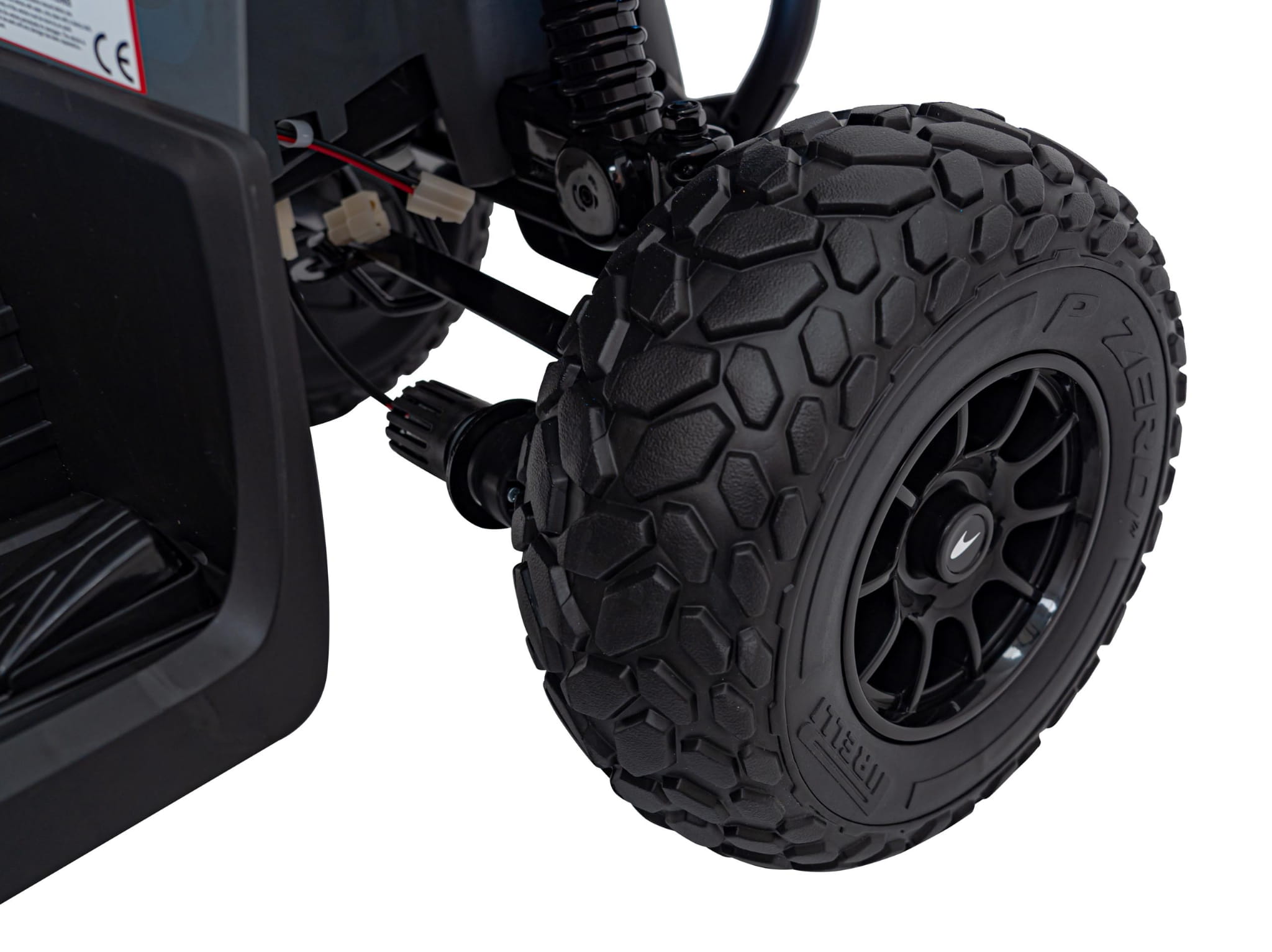 Wygoda małego kierowcy to podstawa. Quad na akumulator McLaren posiada komfortowe siedzenie z ekoskóry o głębokości 43 cm i szerokości 22 cm. Specjalnie zaprojektowane koła z pianki EVA zapewniają nie tylko doskonałą przyczepność, ale także cichą i komfortową jazdę, minimalizując wstrząsy na nierównościach.
