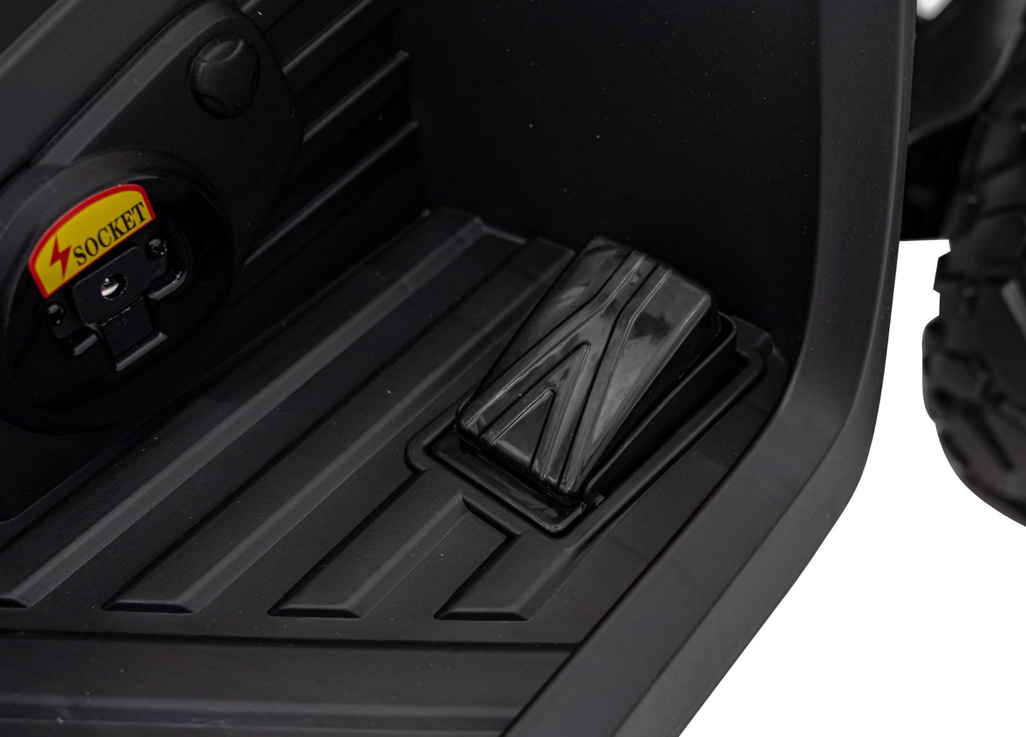 Bezpieczeństwo małego kierowcy jest dla nas priorytetem. Dlatego do zestawu dołączamy pilot zdalnego sterowania 2.4 GHz, który pozwala rodzicom na pełną kontrolę nad quadem. Możesz ustawić jedną z trzech prędkości jazdy lub natychmiast zatrzymać pojazd za pomocą przycisku bezpieczeństwa STOP.