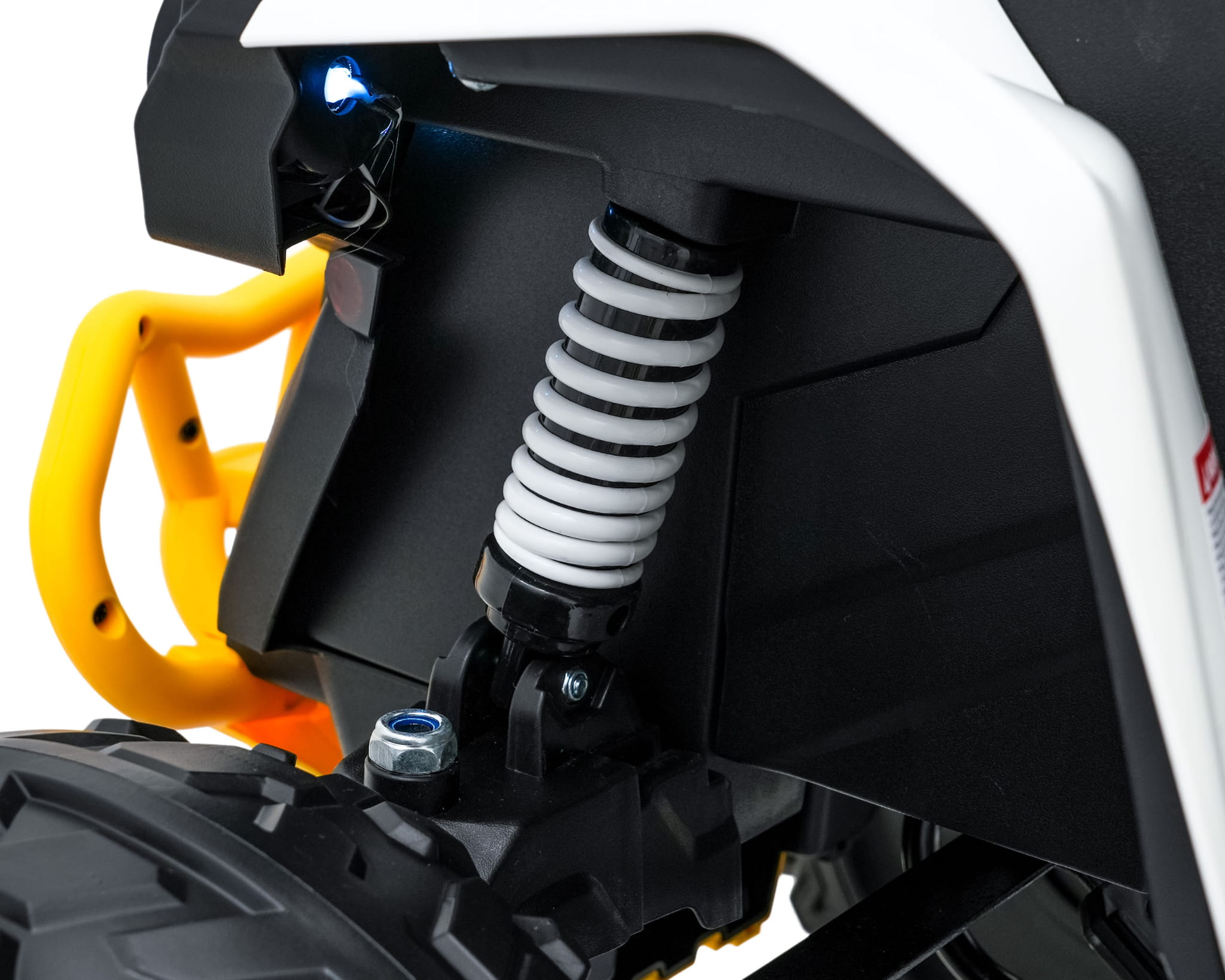 Szukasz niezawodnego pojazdu dla swojego dziecka, który łączy świetną zabawę z bezpieczeństwem? Quad na akumulator Maverick ATV Biały 2x200W to idealny wybór dla małych fanów motoryzacji i jazdy terenowej. To nie jest zwykła zabawka – to miniaturowy pojazd terenowy stworzony z myślą o komforcie i frajdzie najmłodszych użytkowników. Z potężnym napędem 2 x 200W, mocnym akumulatorem 24V 5Ah oraz zaawansowanym wyposażeniem, ten model przenosi dziecięcą jazdę na zupełnie nowy poziom.