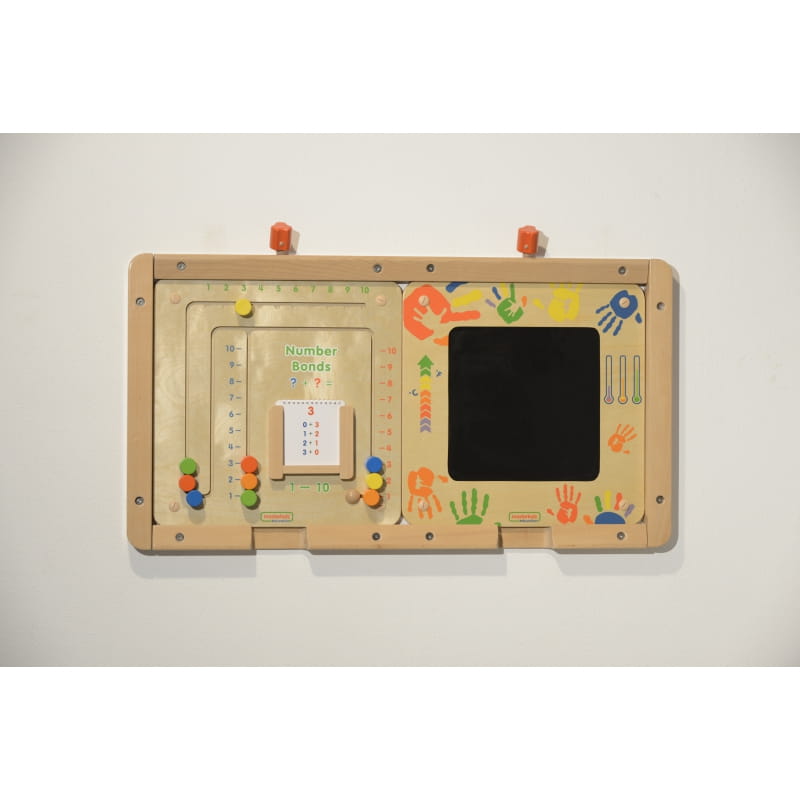 Masterkidz Flex to system montażu zabawek ściennych, który umożliwia ich szybką i łatwą wymianę. Długość panelu można dostosować według własnych potrzeb: można zbudować ramkę na 1 tablicę, lub na inną, dowolną ilość tablic. Budując ramkę, należy zakupić pożądaną ilość pojedynczych i podwójnych jednostek montażowych, oraz komplet krawędzi bocznych.