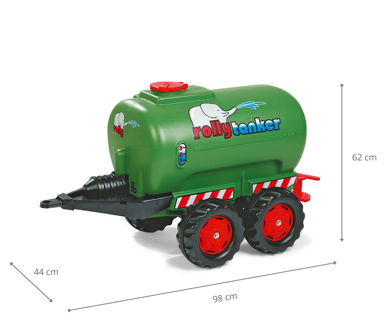 Rolly Toys Tanker - Dwuosiowa Przyczepka Cysterna z Pompką to idealny dodatek do zabawy w gospodarstwo. Ta solidnie wykonana przyczepka, ozdobiona charakterystycznymi logo Rolly Toys Tanker z zabawnym słoniem w kolorze zielonym. sprawi, że Twoje dziecko poczuje się jak prawdziwy farmer. Dzięki dwóm osiom można łatwo przewozić wodę do nawadniania roślin lub "paliwo" dla maszyn rolniczych w trakcie zabawy na podwórku. Mali poszukiwacze przygód mogą z łatwością napełnić cysternę wodą, a następnie użyć kranu spustowego, aby spuścić wodę, gdy zajdzie taka potrzeba. To nie tylko świetna zabawa, ale także rozwój zdolności motorycznych i wyobraźni u dzieci.