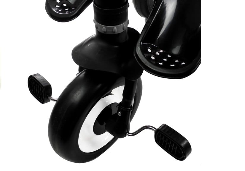 Prezentowany rower trójkołowy swą konstrukcją przypomina wózek typu spacerówka — świadczy o tym rozkładany daszek z siatką czy w pełni regulowane oparcie pozwalające na ustawienie pozycji półleżącej, dzięki czemu potowarzyszy on Twojemu maluszkowi od pierwszych lat życia aż do czasu, gdy będzie mógł samodzielnie jeździć na dwukołowym rowerku. Pojazd dla maluchów w fioletowym odcieniu oparty jest na trzech piankowych kołach, które posiadają wiele zalet — są odporne na przebicia, a ich waga jest dużo niższa, niż w przypadku opon pompowanych.