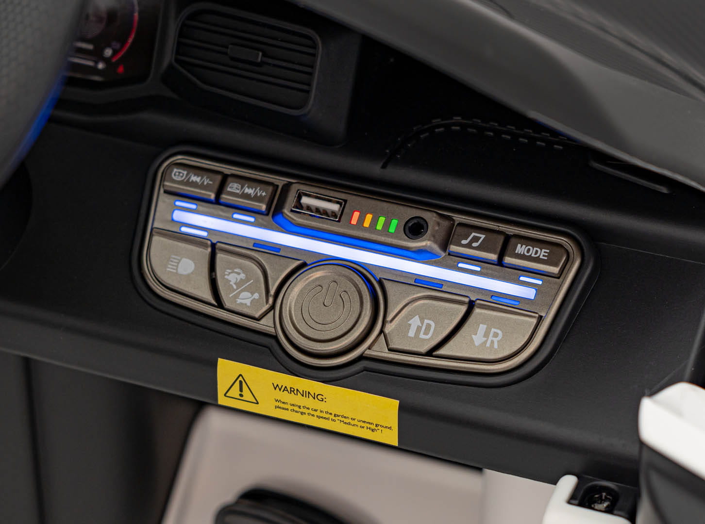 Z myślą o najmłodszych użytkownikach pojazd wyposażono w pilot 2.4GHz z przyciskiem STOP, który zapewnia pełną kontrolę rodzica nad jazdą. Trzy prędkości, wolny start oraz możliwość jazdy do przodu i do tyłu gwarantują bezpieczną i komfortową zabawę. Dodatkowe udogodnienia, jak wskaźnik naładowania baterii i ładowarka z diodą kontrolną, ułatwiają codzienne użytkowanie.