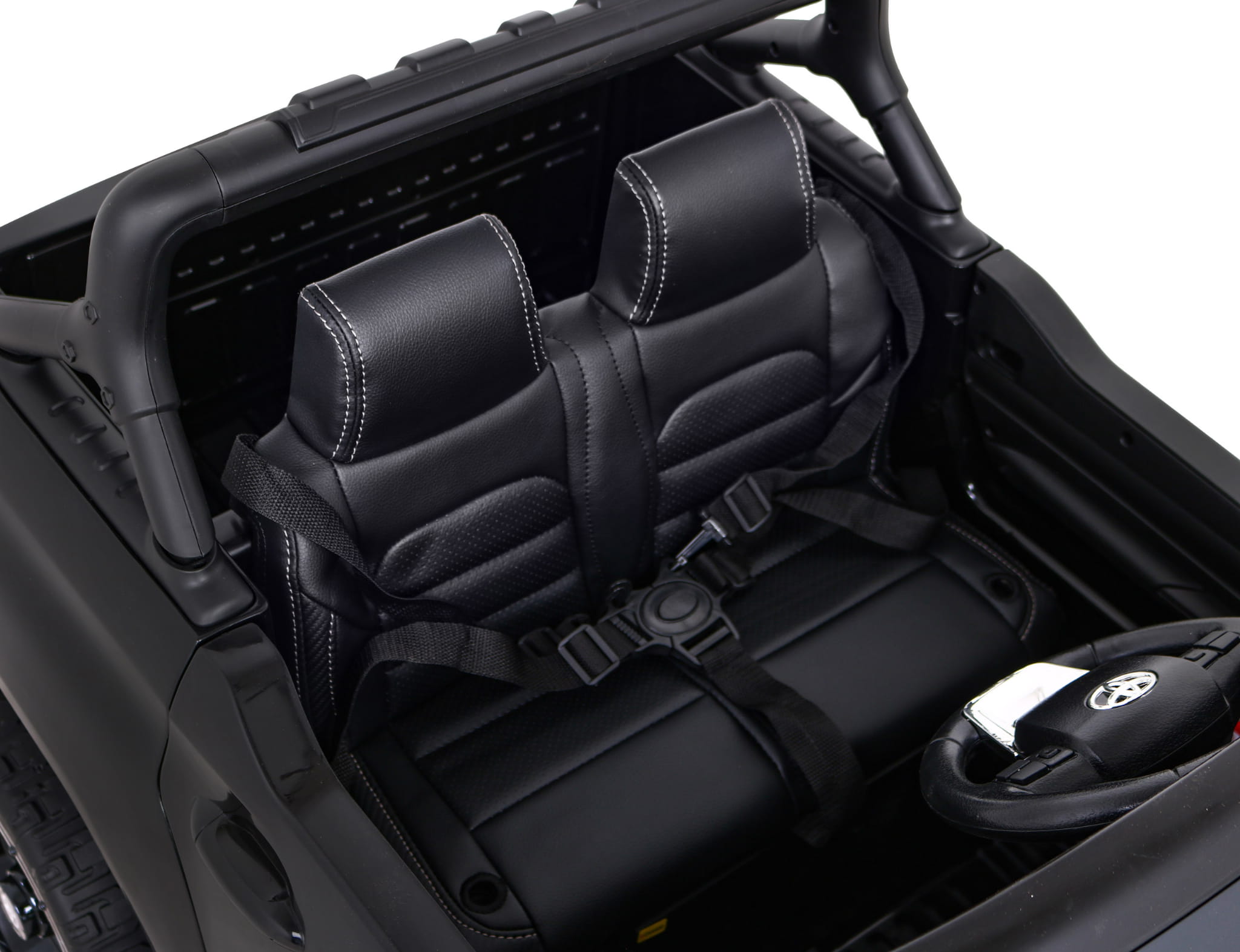 Stylowy, terenowy design i wierne odwzorowanie prawdziwej Toyoty Hilux sprawiają, że ten samochód na akumulator dla dzieci przyciąga spojrzenia. Matowa czerń, światła LED oraz otwierane drzwi tworzą wrażenie że auto jest prawdziwe. Do tego komfortowe siedzenie z czarnej eko-skóry i pasy bezpieczeństwa zapewniają wygodę nawet podczas dłuższych „wypraw”.