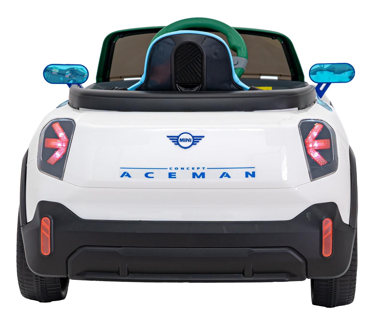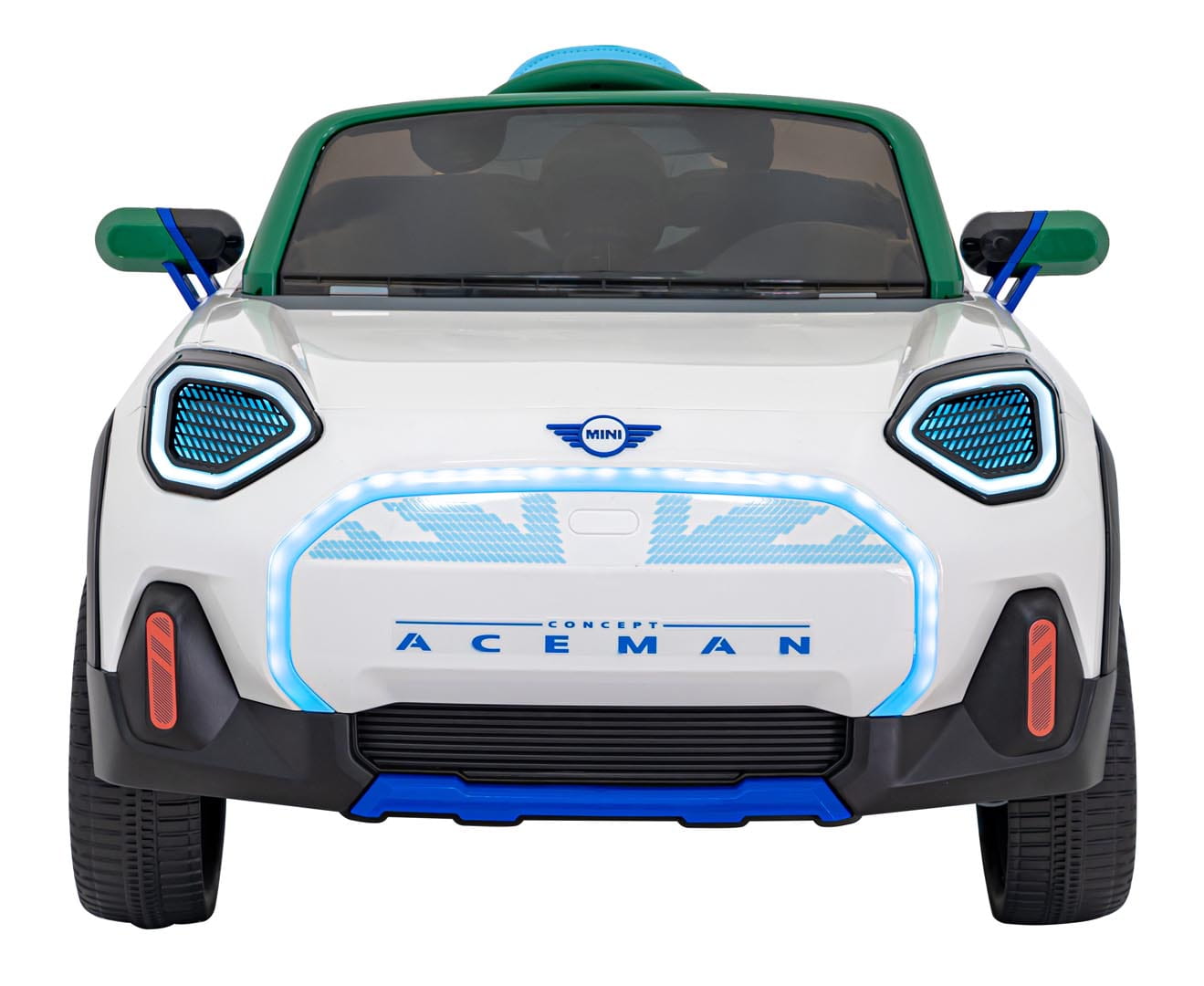 Mini Concept Aceman wyposażony jest w przednie i tylne światła LED oraz podświetlany przedni grill, co nadaje mu nowoczesny wygląd. Dodatkowo, panel audio z funkcjami MP3, Bluetooth, USB i AUX pozwala na odtwarzanie ulubionej muzyki dziecka, a przyciski z melodyjkami i klaksonem w kierownicy dostarczają dodatkowej zabawy.