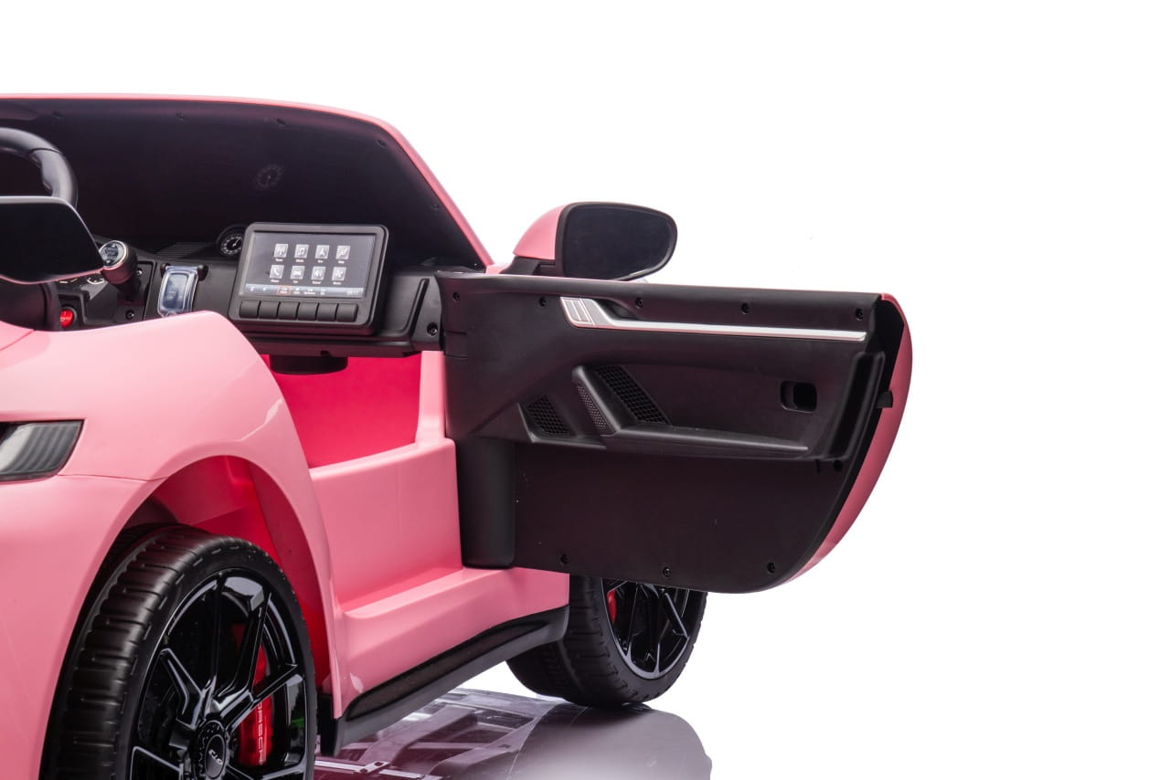 Ten różowy samochód na akumulator dla dziewczynki został stworzony z dbałością o każdy detal. Posiada realistyczne światła LED, wbudowany panel audio z radiem FM i Bluetooth oraz welurowe dywaniki z logo Porsche. Komfort jazdy zapewnia miękkie, podwójne siedzenie z ekoskóry z welurowym wykończeniem oraz pasy bezpieczeństwa. Dzięki silnikom o mocy 2x280W mute motor i akumulatorowi 24V10Ah, auto oferuje dynamiczną, ale bezpieczną jazdę. Funkcja wolnego startu i regulacja prędkości pozwalają dostosować tempo do umiejętności dziecka.