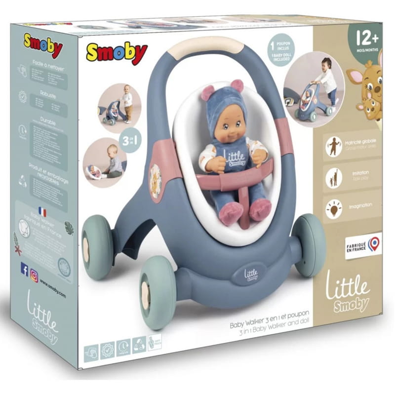 Smoby Little Chodzik Pchacz 3w1 Wózek dla Dzieci + Lalka Bobas