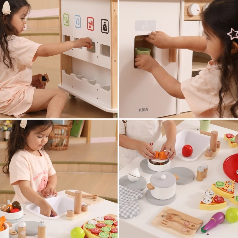 Dzięki temu kompleksowemu zestawowi, Twoje dziecko może odgrywać realistyczne scenki, rozwijając jednocześnie empatię, umiejętności społeczne i odpowiedzialność. Maluchy mogą naśladować dorosłych: gotować pyszne posiłki, prać, sprzątać, a nawet sortować śmieci – to kompletna zabawka do nauki życia codziennego!