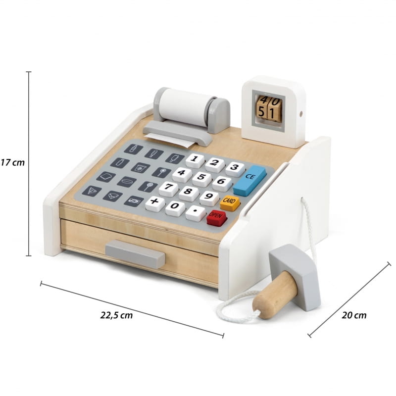 VIGA Drewniana Kasa sklepowa szaro biała