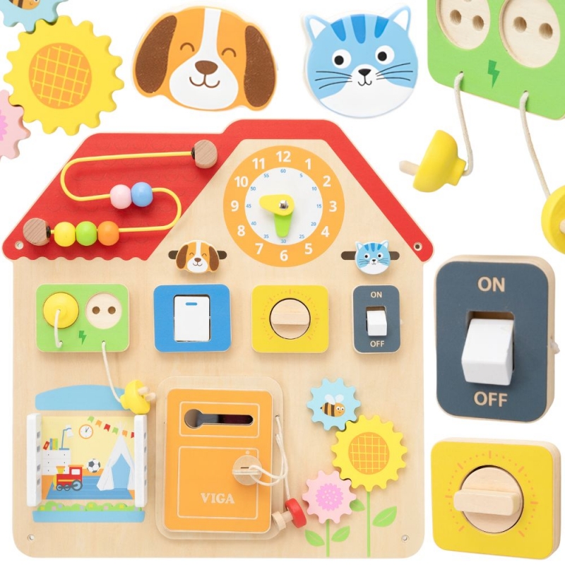 VIGA Drewniana Tablica Manipulacyjna Domek Odkrywania i Nauki