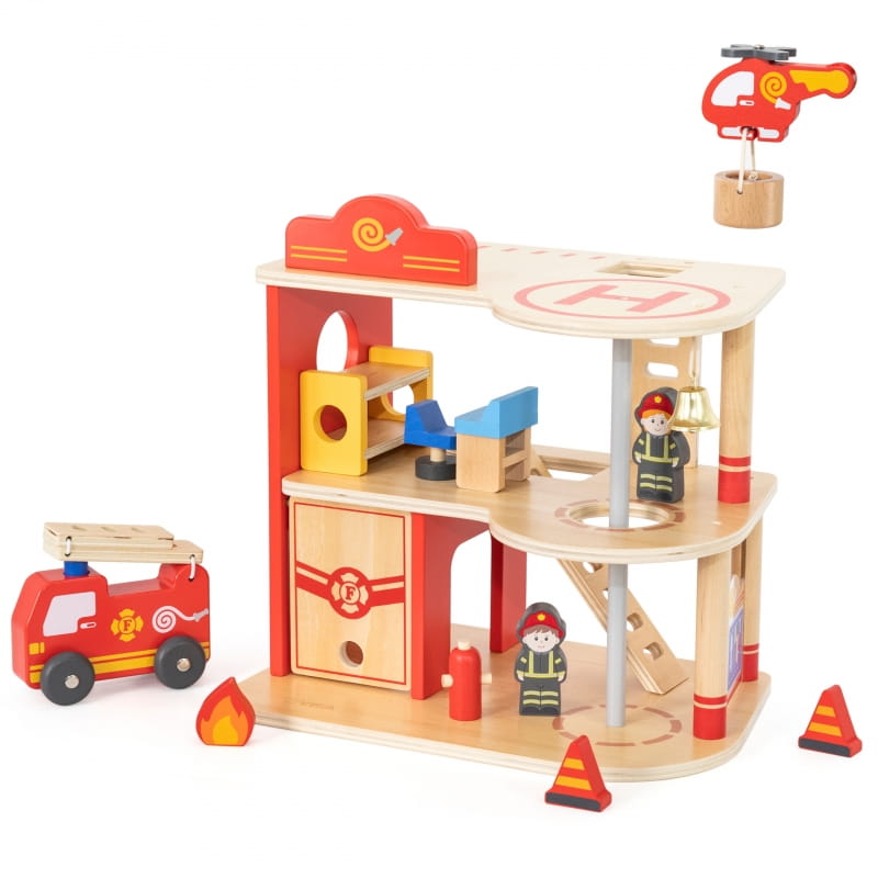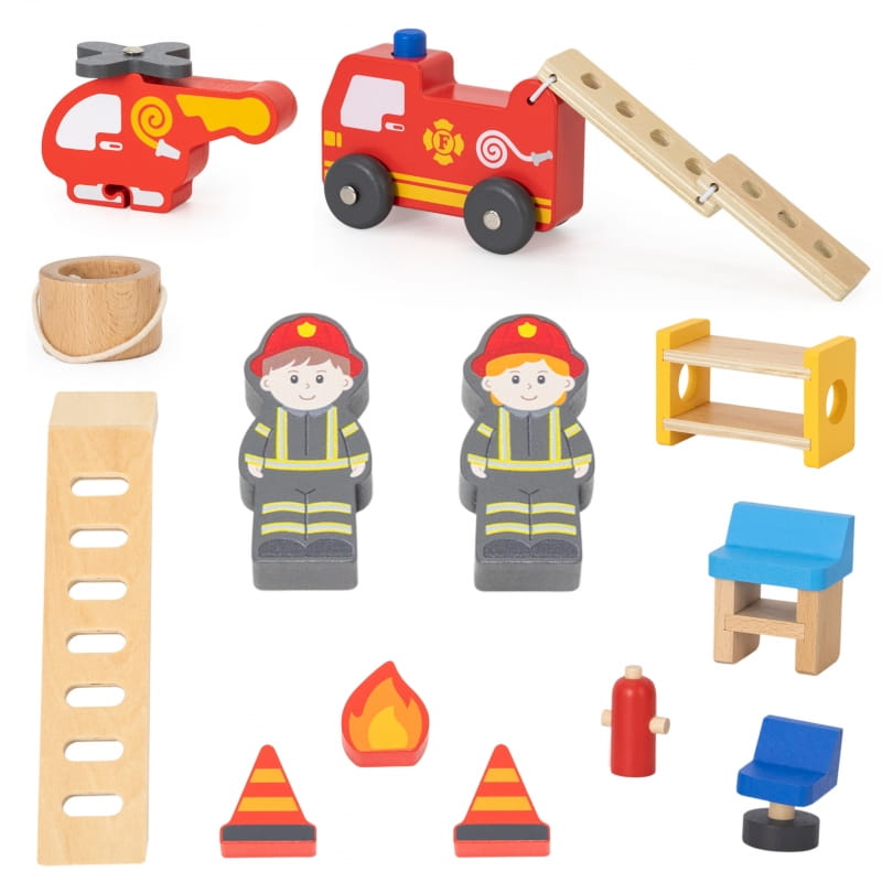 VIGA Drewniany Garaż Remiza Straży Pożarnej Zestaw 14 el