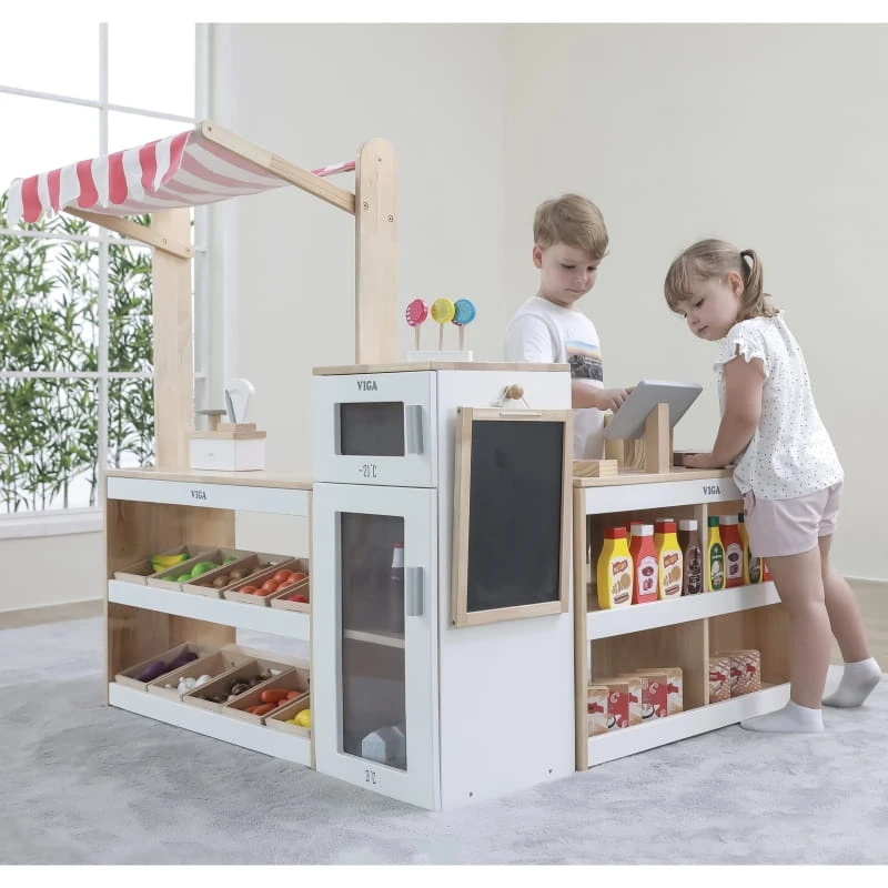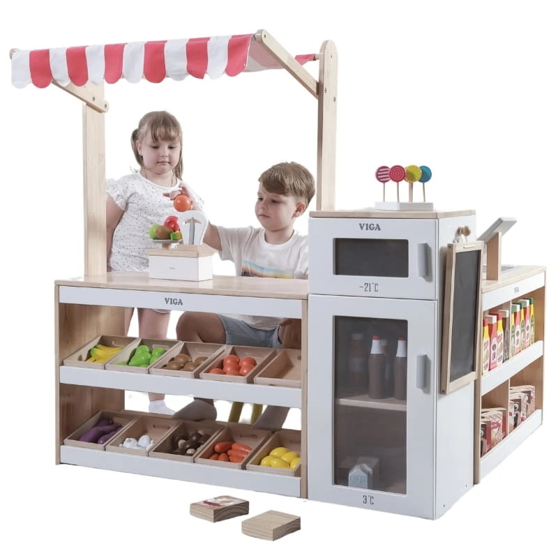 VIGA Drewniany Zestaw Stragan Sklep Supermarket XXL