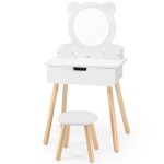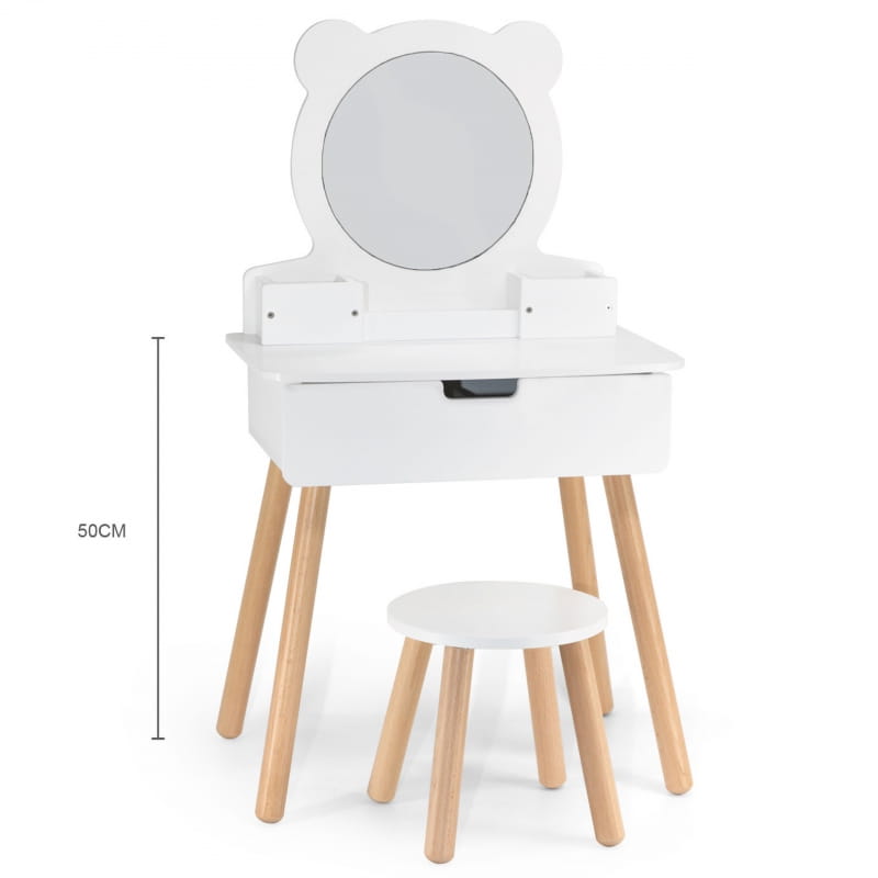 VIGA Duża Toaletka Drewniana Biała z Lustrem i Krzesełkiem