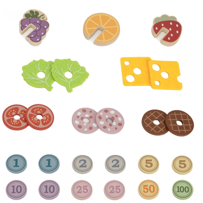 Najważniejszy element edukacyjny? Pieniądze do zabawy! W zestawie znajdują się monety o różnych nominałach, które pozwalają na symulację transakcji. Dzięki temu, w naturalny i przyjazny sposób, Twoje dziecko uczy się liczenia, rozpoznawania wartości i podstaw zarządzania pieniędzmi – bezcenne umiejętności na przyszłość!