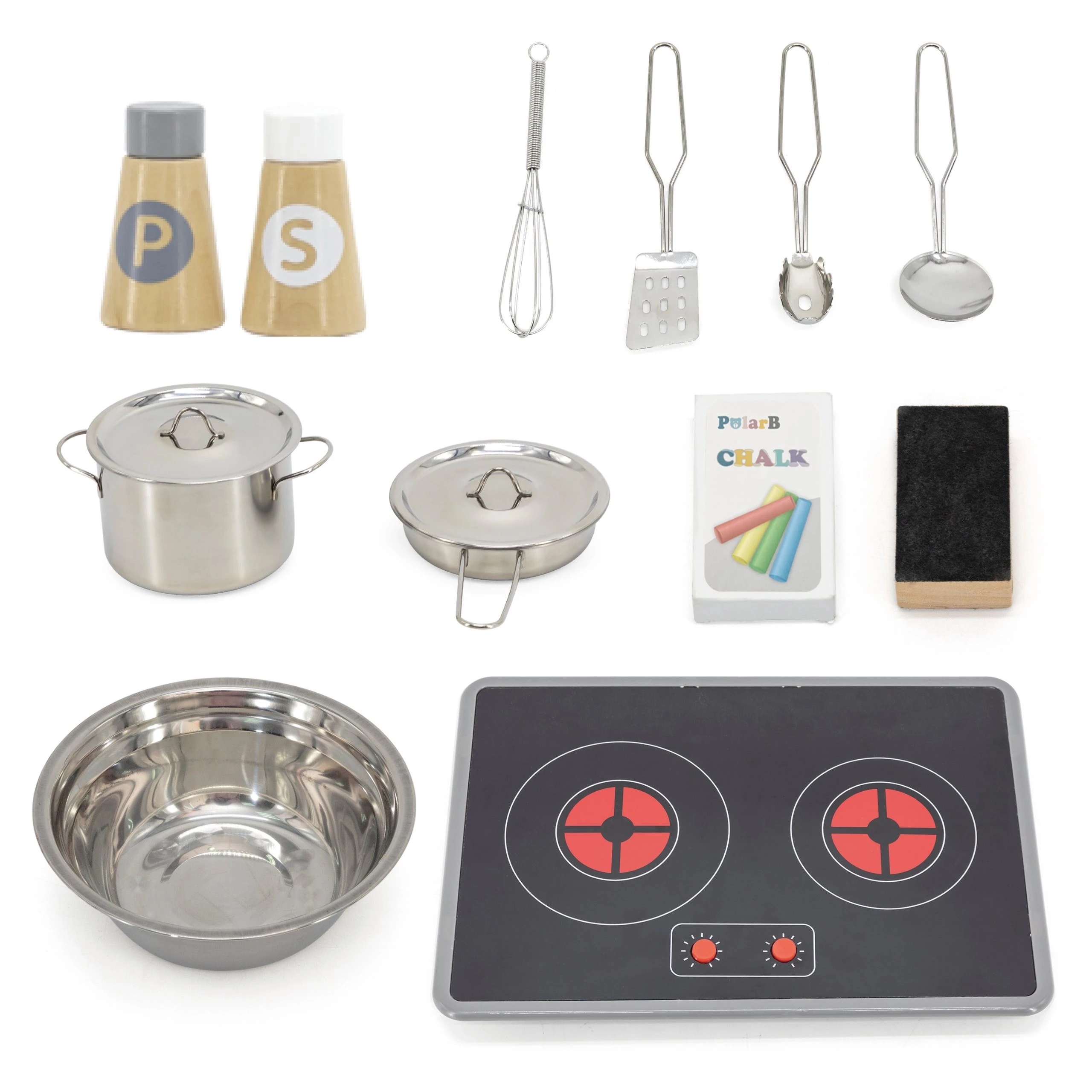 - Pojemniczki na sól i pieprz oraz kolorowe kredy.