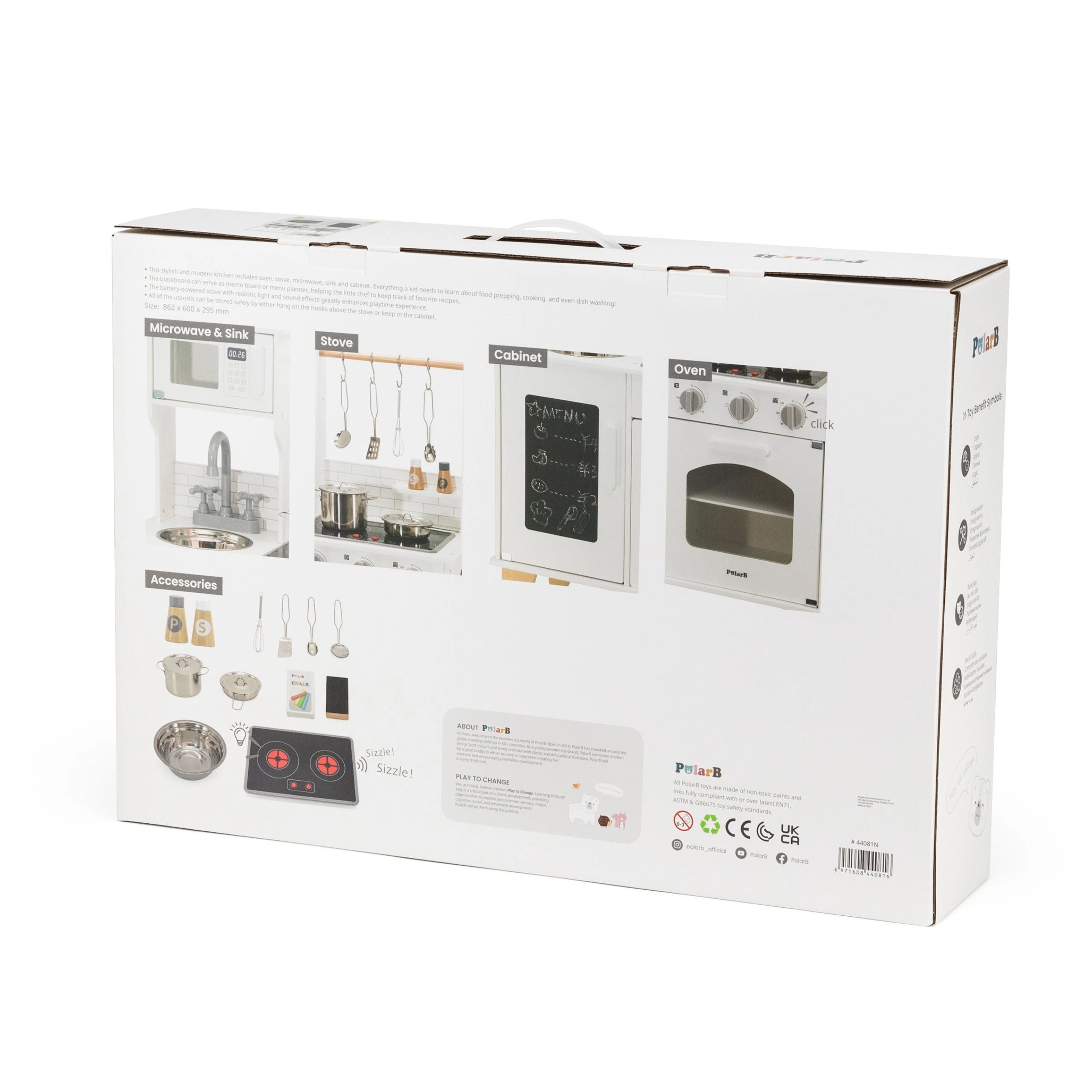 Bezpieczeństwo i jakość wykonania to priorytety, którymi kieruje się marka VIGA. Konstrukcja wykonana z lakierowanego drewna gwarantuje, że zabawka przetrwa lata intensywnego użytkowania. Drewniana kuchnia z tablicą od marki VIGA została zaprojektowana tak, aby naśladować prawdziwe sprzęty domowe, co pozwala dzieciom bezpiecznie oswajać się z otoczeniem i uczyć się poprzez naśladowanie dorosłych.
