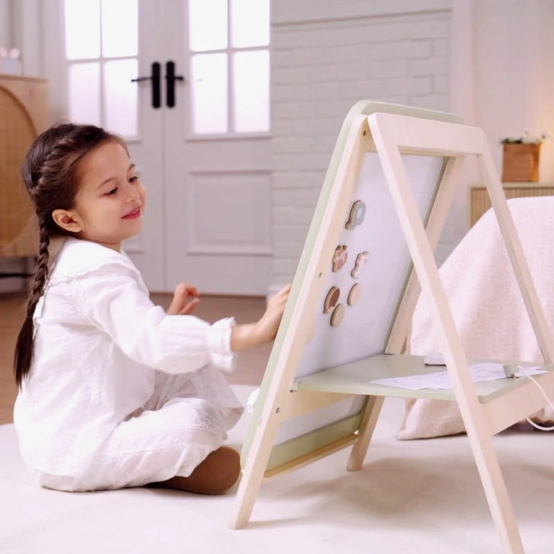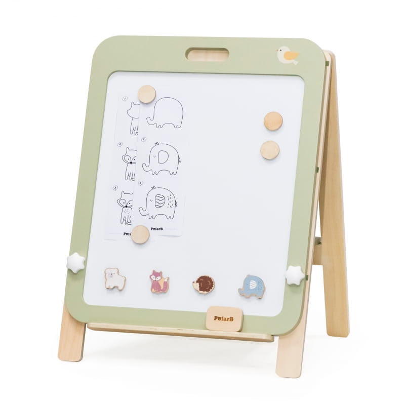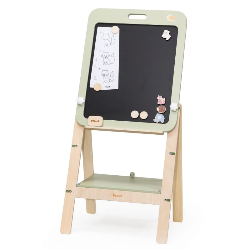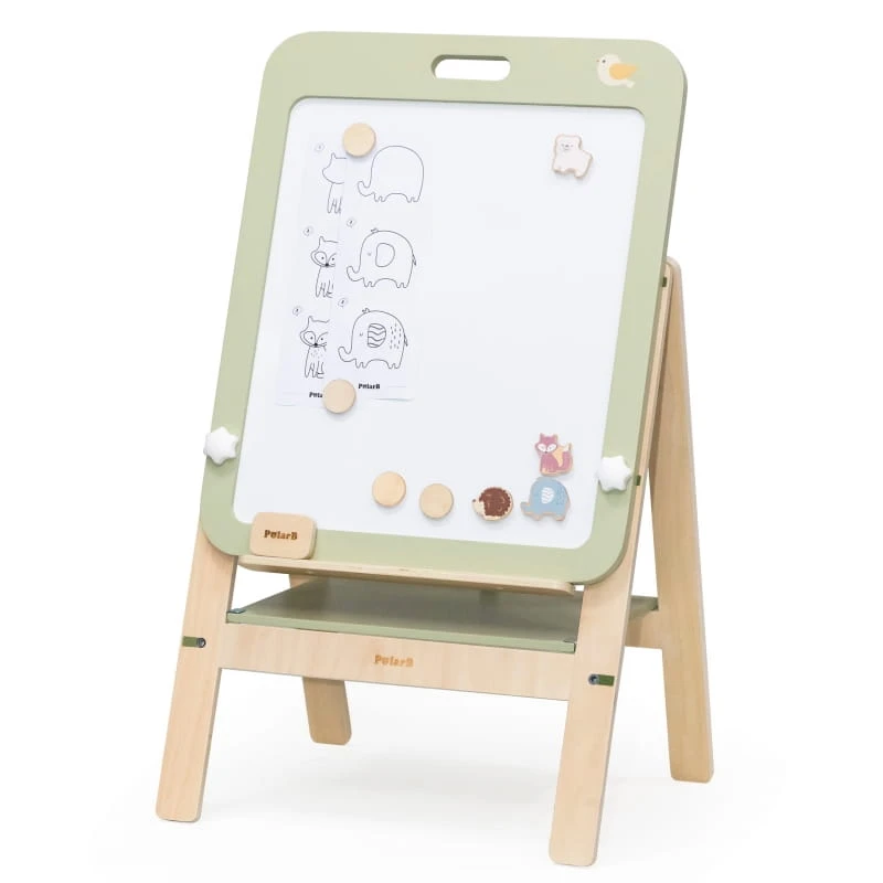 Drewniana Rosnąca Tablica z serii PolarB to wspaniałe narzędzie dla małych artystów, które zachęca do kreatywnej zabawy i rozwija zdolności manualne. Tablica posiada dwustronną powierzchnię – z jednej strony klasyczną czarną tablicę kredową, a z drugiej białą tablicę magnetyczną. Dzięki regulowanej wysokości tablicy, można ją łatwo dostosować do rosnącego dziecka, zapewniając komfortową zabawę na różnych etapach rozwoju. Co więcej, tablica może służyć jako dekoracja po skończonej zabawie, gdyż można ją zdjąć i zawiesić na ścianie!
