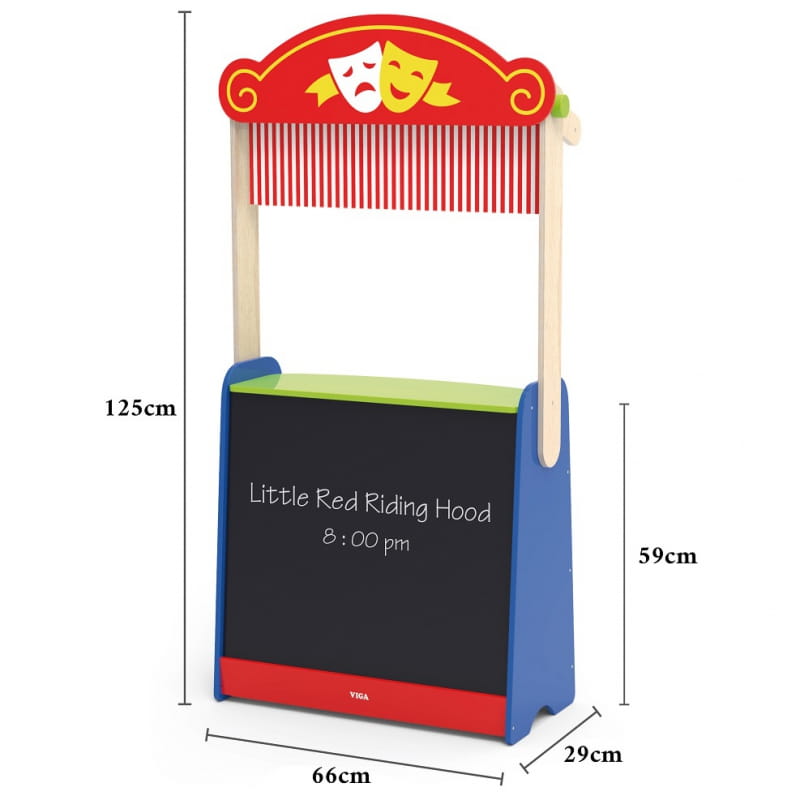 - kiedy dzieci bawią się w teatr, można zwinąć kurtynę i na czarnej tablicy zapisać tytuł bajki