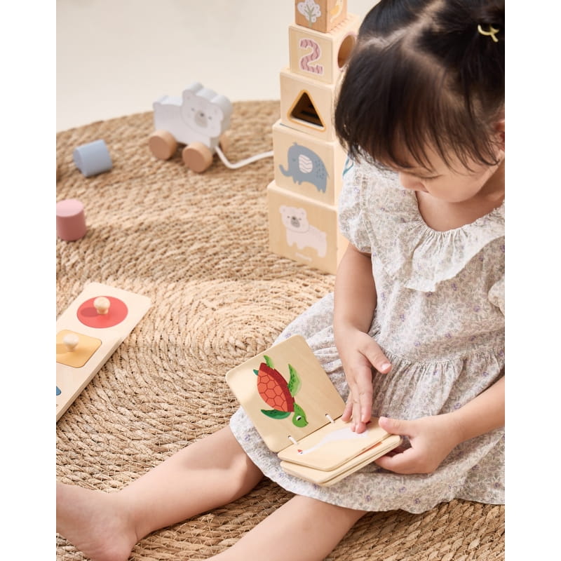 - drewniana książeczka – mała książeczka z obrazkami zwierząt, idealna do pierwszych prób czytania