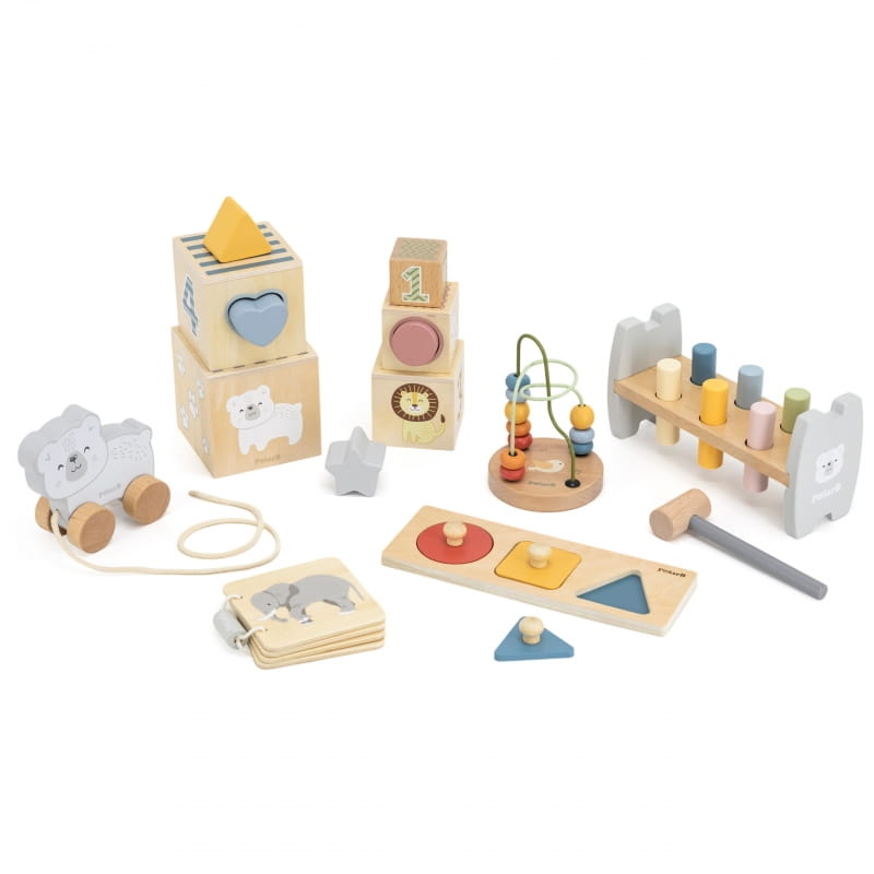 Motion Masters (12-18M) to zestaw zaprojektowany, aby wspierać maluszki w ich naturalnym rozwoju ruchowym i poznawczym. Dzięki różnorodnym zabawkom dzieci ćwiczą koordynację, rozwijają sprawność paluszków i rączek, a także uczą się rozpoznawania kształtów i kolorów. Kolorowe elementy oraz drewniane zwierzątka wzbudzają ciekawość i zachęcają do odkrywania nowych umiejętności każdego dnia.