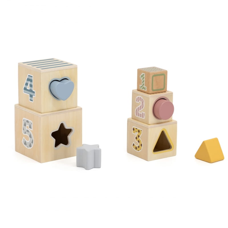 - piramidka sorter kształtów – 5 klocków do układania, które pomagają w zrozumieniu pojęcia wielkości i liczby