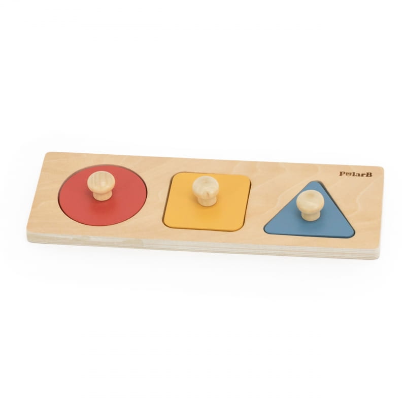 - układanka geometryczna – duże klocki z uchwytami, pomagające w rozpoznawaniu podstawowych kształtów i kolorów