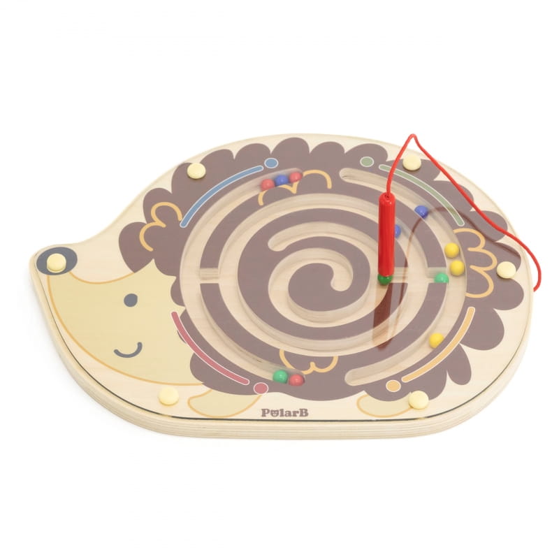 - magnetyczny labirynt jeż – zabawka, która wspiera koordynację ręka-oko i precyzyjne ruchy, umożliwiając dziecku manipulowanie koralikami za pomocą magnetycznego pióra