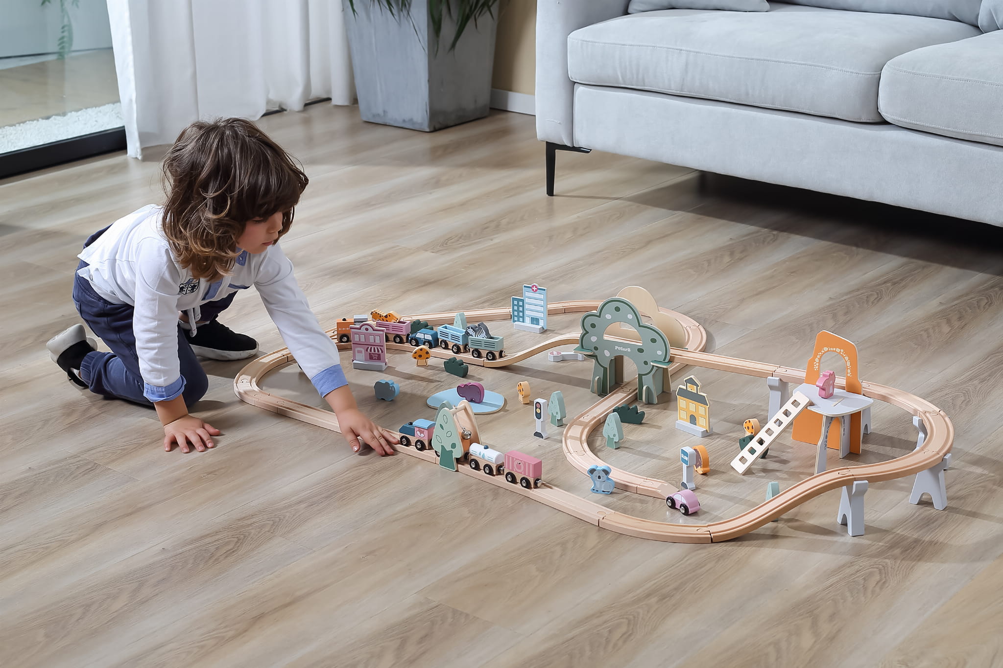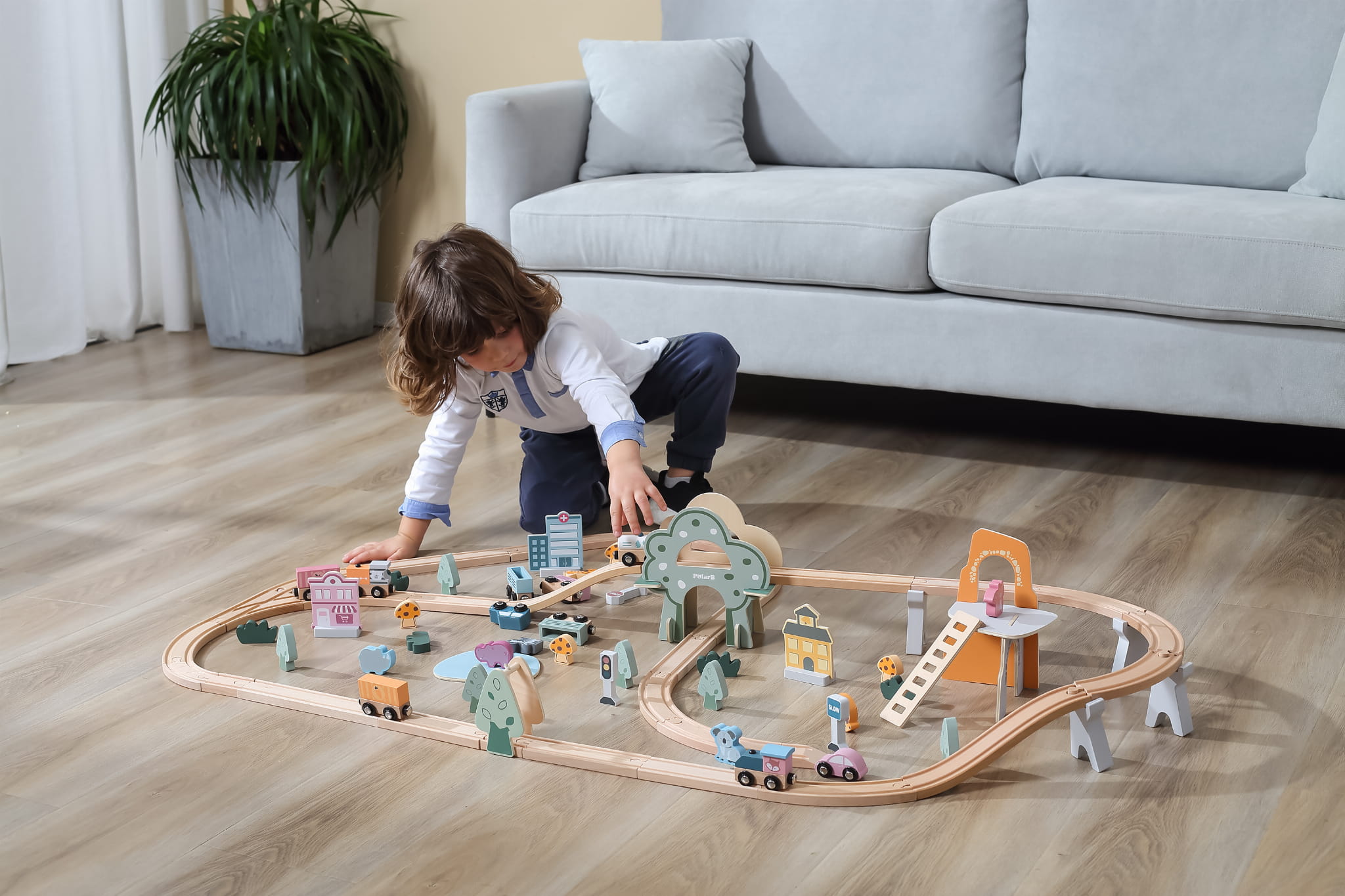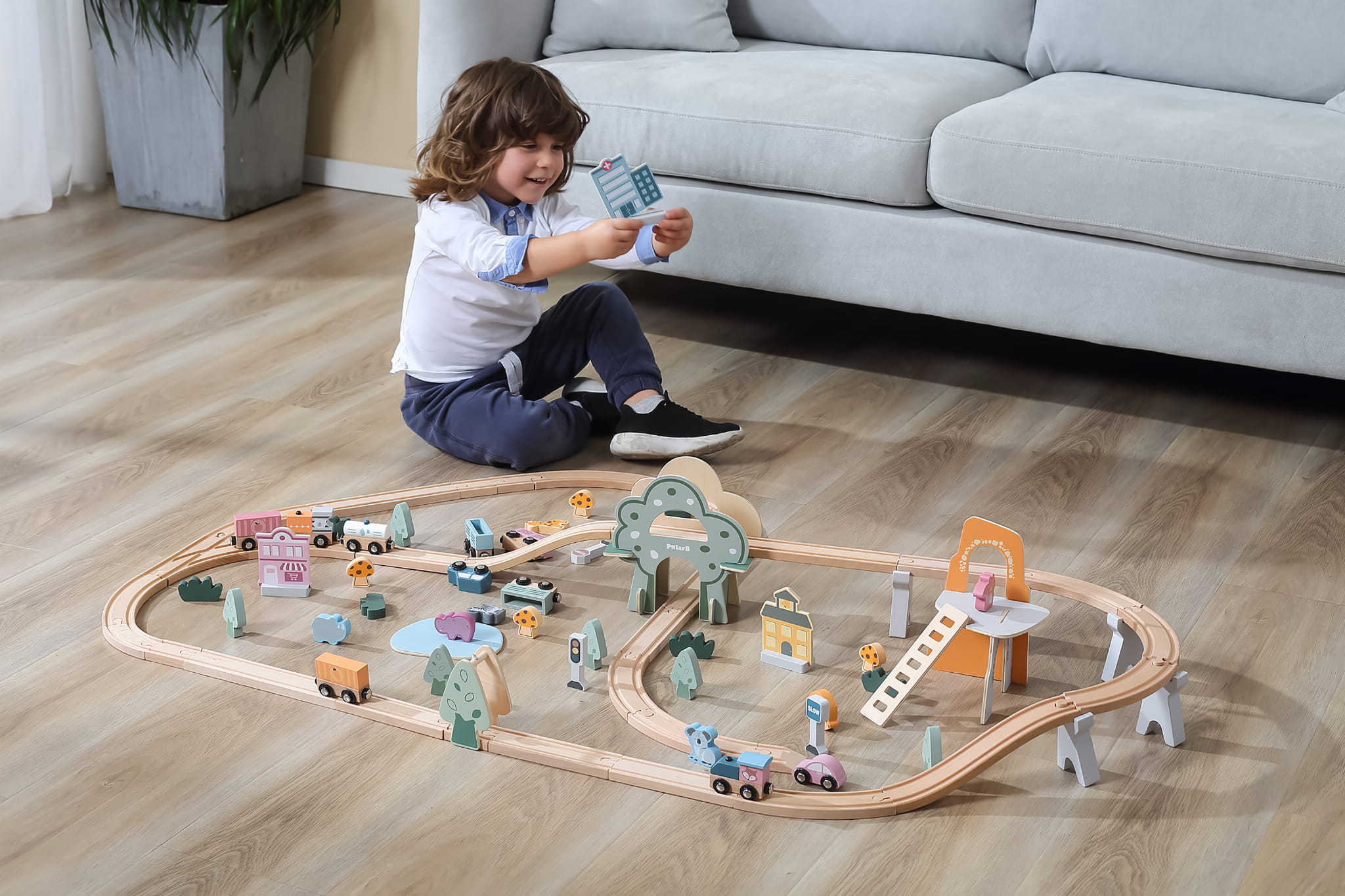 Wielka stacja kolejowa od firmy Viga to jeden z najwspanialszych zabawek, która będzie służyła długo i zapewni Twojemu dziecku wiele lat ciekawej i kreatywnej zabawy. Ten niesamowity zestaw pobudzi wyobraźnię Twojego dziecka. Sprawi, że maluch wcieli się w rolę budowniczego tworząc swoje własne miasteczko wraz z linią kolejową. To świetna zabawa, do której dołączyć może cała rodzina. Dzięki tej zabawce dziecko rozwija sprawność manualną oraz ćwiczy koordynację ręka-oko.