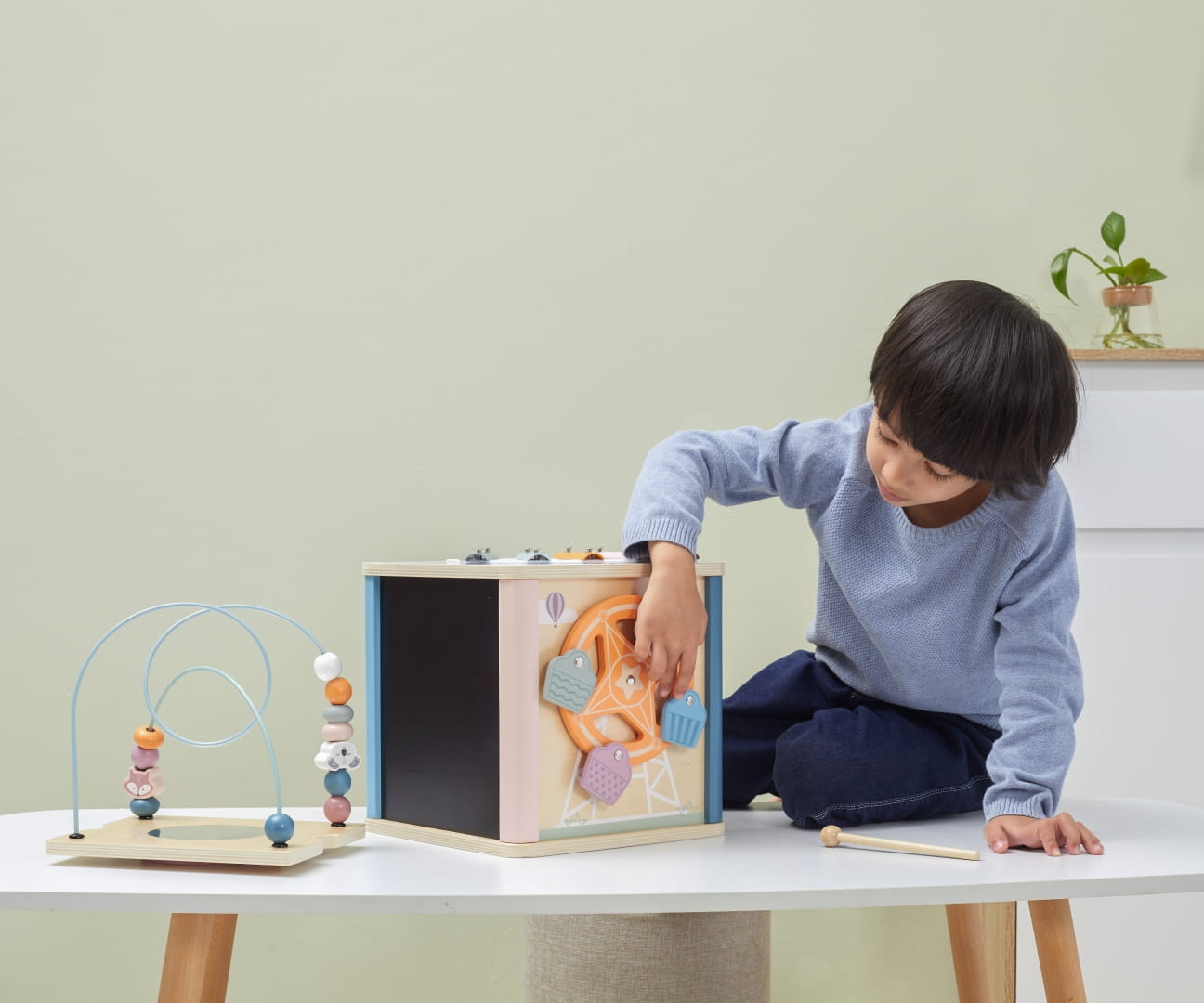 Przedstawiamy drewnianą zabawkę marki VIGA – sorter edukacyjny 8w1 z labiryntem przestrzennym z serii PolarB. Zabawka w kształcie dużego pudełka-kostki to interaktywny zestaw, który zapewnia dzieciom różnorodne możliwości zabawy i nauki. Kostka jest zaprojektowana w taki sposób, aby rozwijać umiejętności manualne, logiczne myślenie, sensorykę, motorykę oraz koncentrację. Kostka zachęca do kreatywnej zabawy, dając dzieciom możliwość rozwijania i poprawiania koordynacji ręka-oko. Dzieci mogą manipulować, eksperymentować z różnymi kombinacjami i rozwijać swoją wyobraźnię.