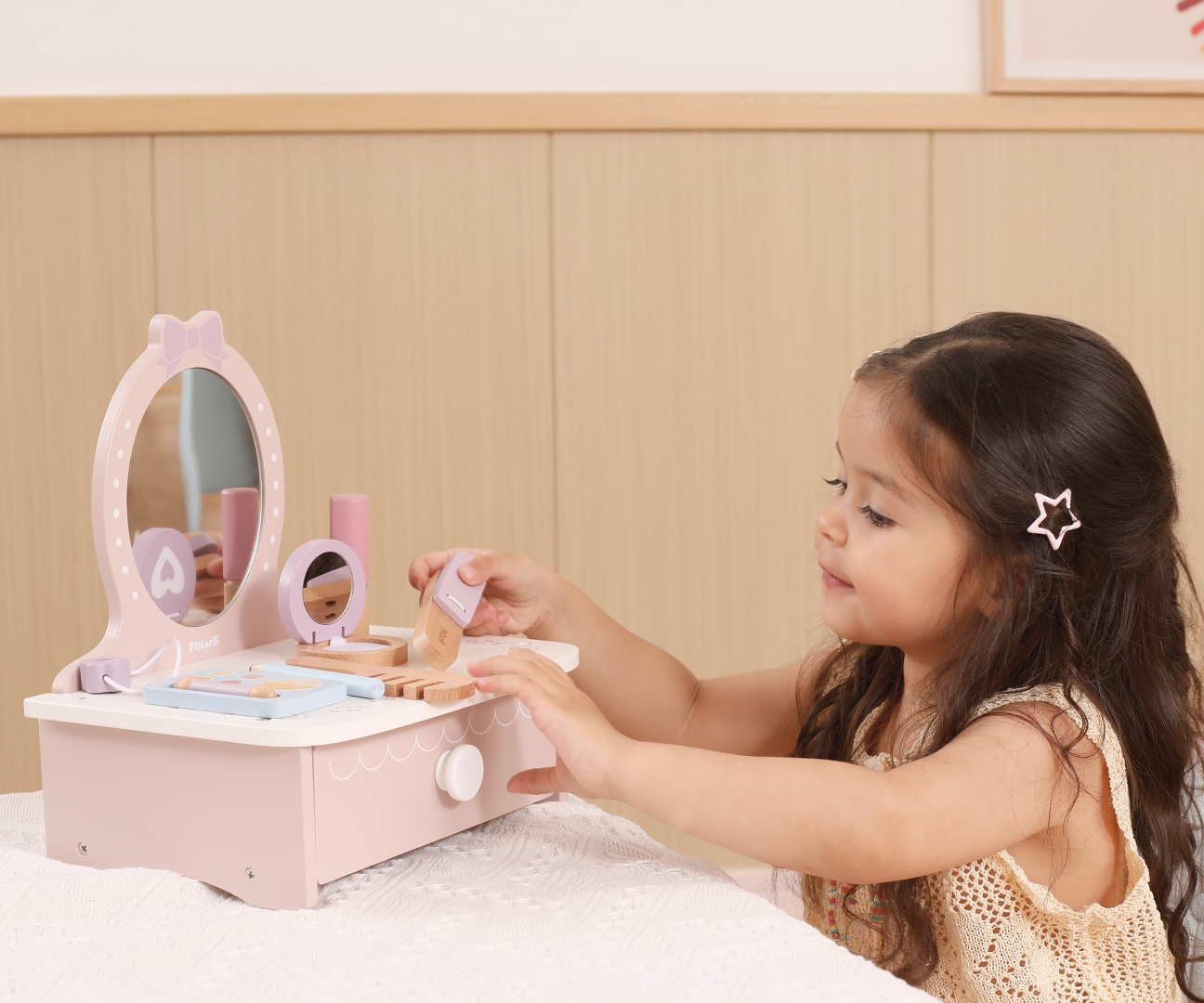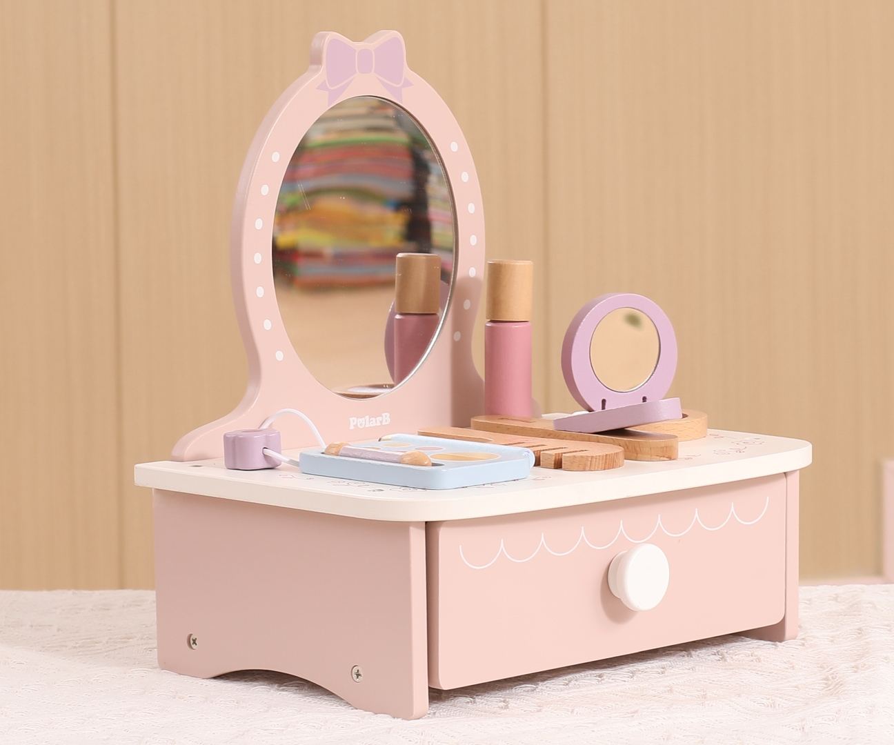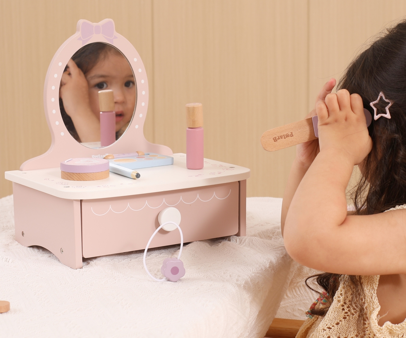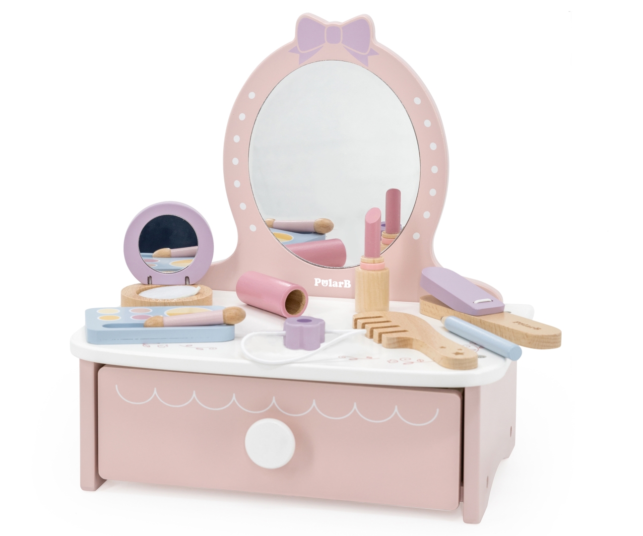 Viga 44271N PolarB Drewniana toaletka z akcesoriami do zabawy: Salon Piękności w Pastelach!