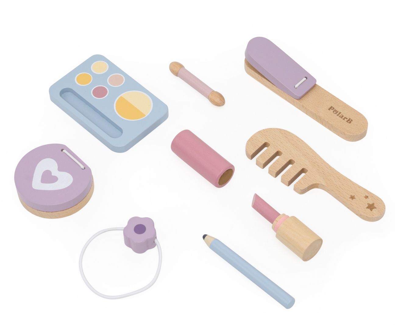 - Komplet Akcesoriów: W zestawie znajduje się aż 8 drewnianych akcesoriów, niezbędnych do "makijażu" (szminka, cienie, pędzelek, pierścionek).