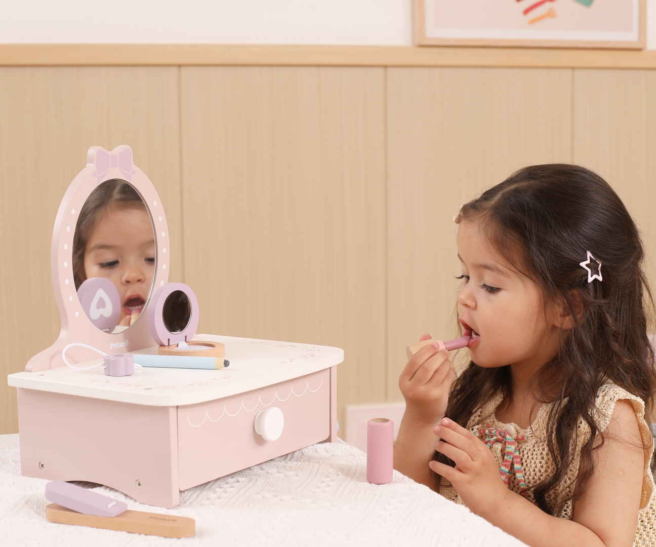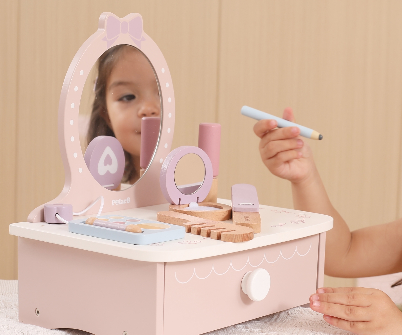 Rozwój Wyobraźni i Umiejętności Odgrywania Ról dzięki Viga 44271N PolarB Drewniana toaletka z akcesoriami do zabawy
