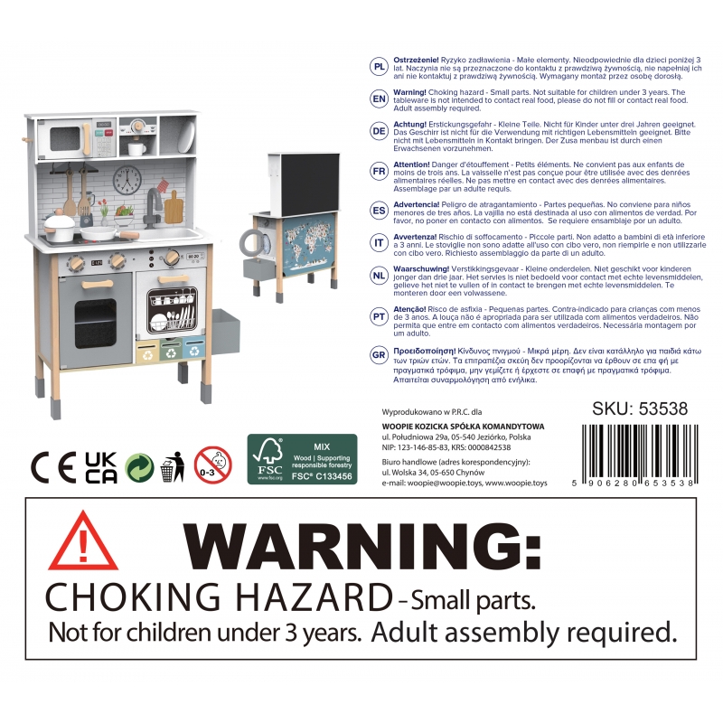 Nie przegap okazji na ten wyjątkowy, wielofunkcyjny zestaw. Drewniana Kuchnia Dla Dzieci 9w1 Woopie Green to inwestycja w rozwój, kreatywność i długie godziny wartościowej zabawy.