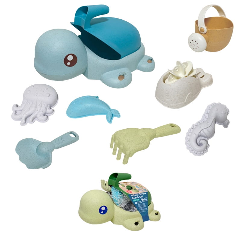 WOOPIE GREEN Zestaw 2w1 do Piasku i Wanny Żółwik Niebieski 8 el. BIODEGRADOWALNY ORGANICZNY MATERIAŁ