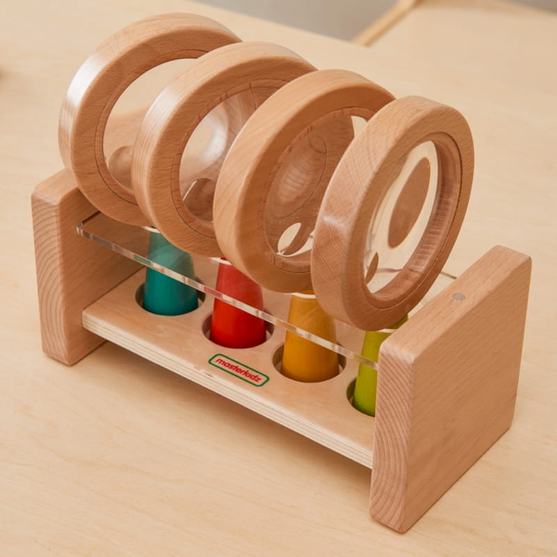 Pozwól dziecku zamienić się w małego odkrywcę dzięki wyjątkowemu zestawowi lup z drewnianym stojakiem! W skład zestawu wchodzą cztery solidne lupy z dużymi, przezroczystymi soczewkami o powiększeniu, które doskonale nadają się do badania roślin, owadów czy innych skarbów natury. Każda lupa ma ergonomiczny, drewniany uchwyt w żywych kolorach (czerwonym, zielonym, żółtym i niebieskim), dostosowany do małych rączek.