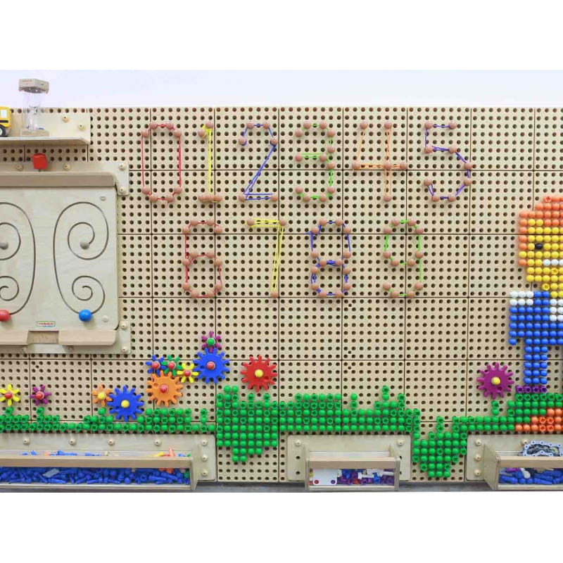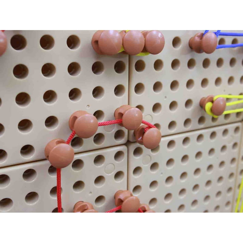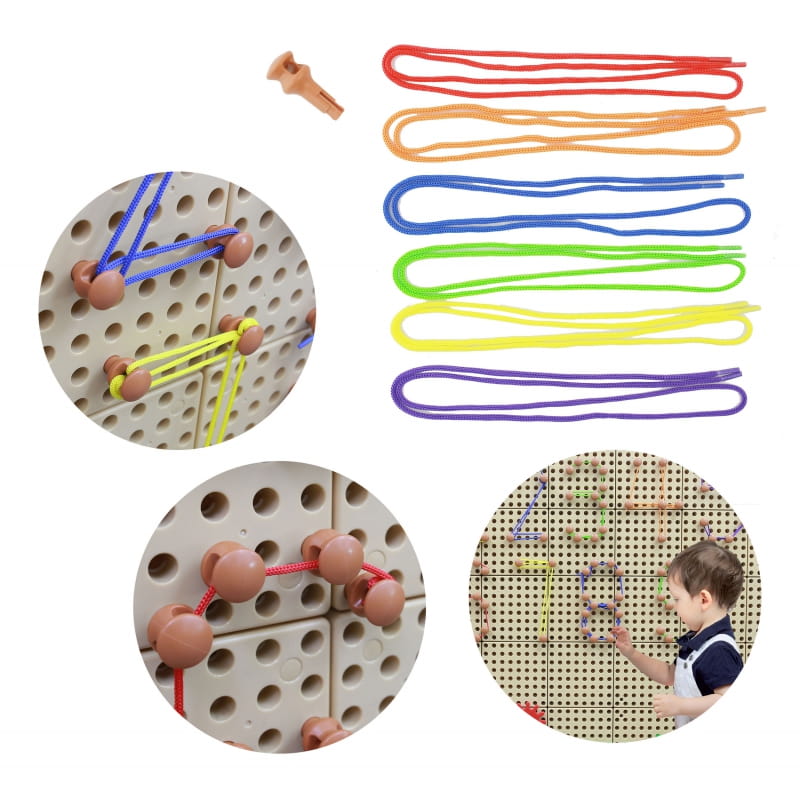 Zestaw 200 kołeczków w neutralnym kolorze, oraz 60 sznureczków w 6 różnych kolorach. Pozwala na tworzenie niepowtarzalnych obrazków - zarówno mieszając sznureczki z pozostałymi elementami przeznaczonymi do tablic Masterkidz STEM, jak i samodzielnie. Umieść kołki w odpowiednich miejscach, a następnie połącz je za pomocą kolorowych sznurków. Tym sposobem można "rysować" literki, cyferki, figury geometryczne, a także wszystko inne, co nam przyjdzie do głowy.